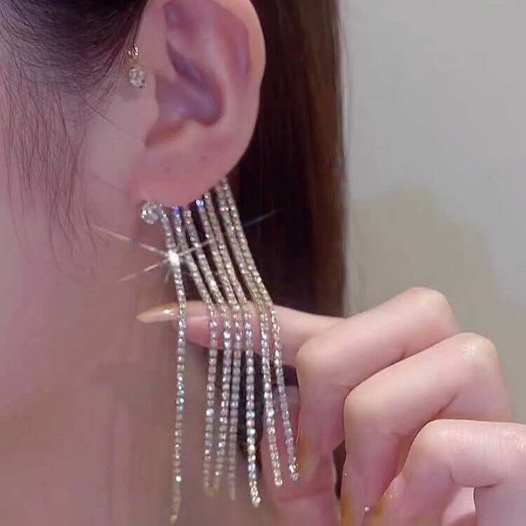 Pendientes largos con borlas y diamantes de imitación de circonita brillante de lujo