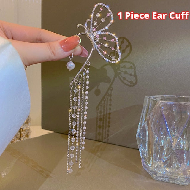 Pendientes de moda: nuevos pendientes de lujo con brillantes circonitas y diamantes de imitación, largos con borlas y clip para la oreja, exquisitos pendientes vintage con clip, joyería de moda para bodas y fiestas.