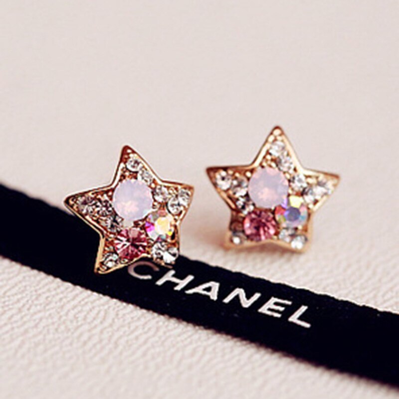Pendientes de clip de lujo con forma de estrella y diamantes de imitación de colores para mujer