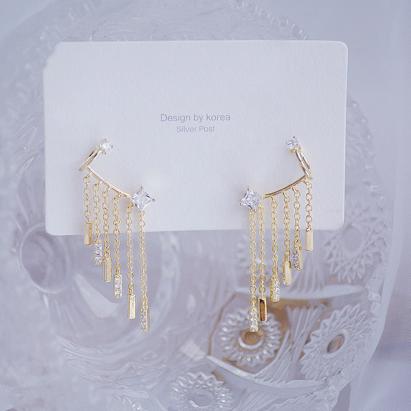 Pendientes de borla de circonitas brillantes con temperamento de lujo para mujer