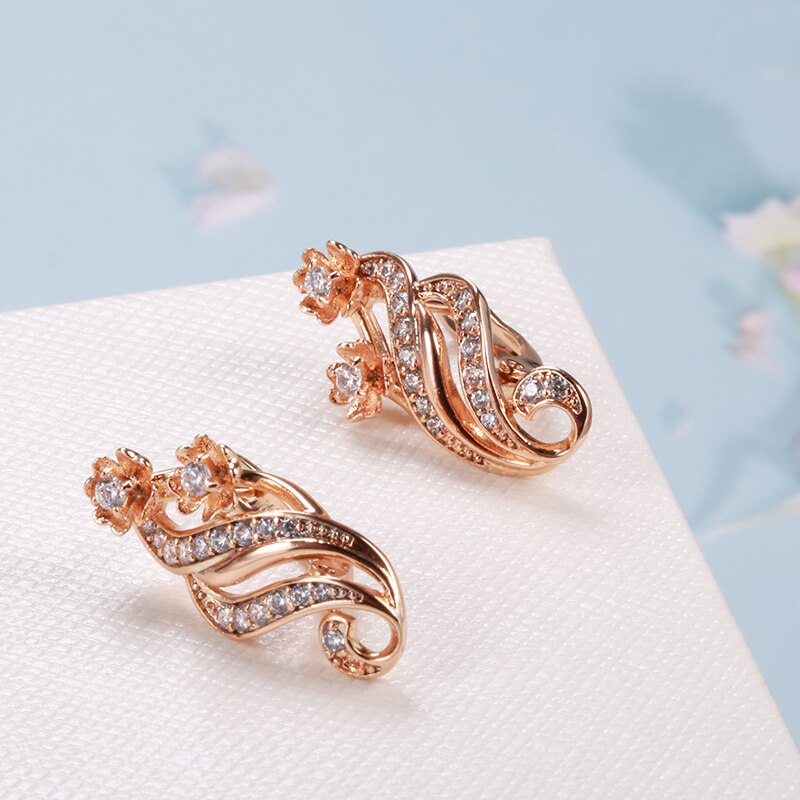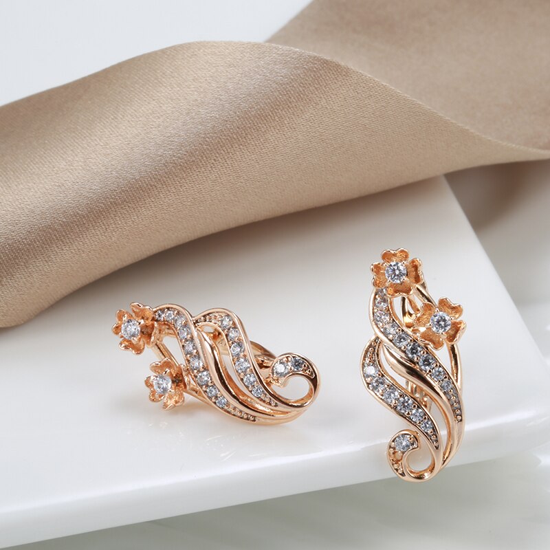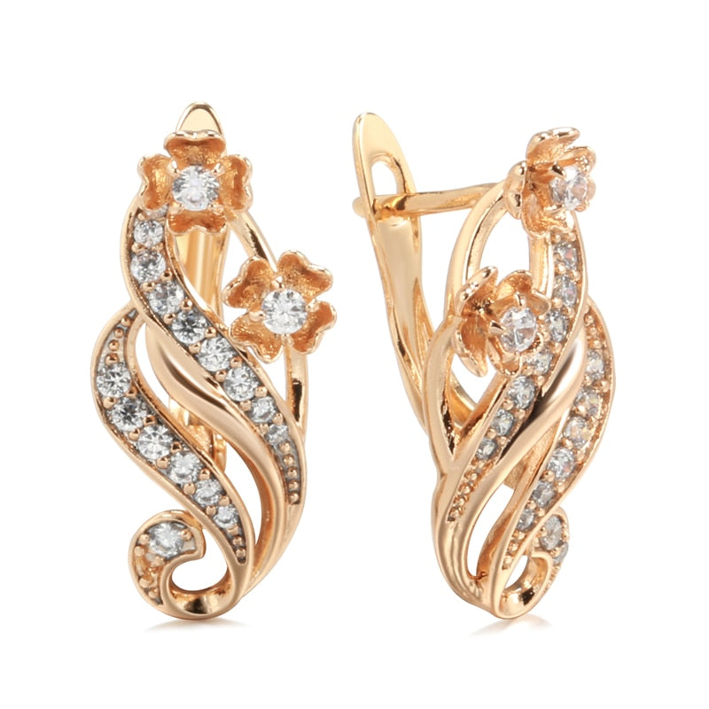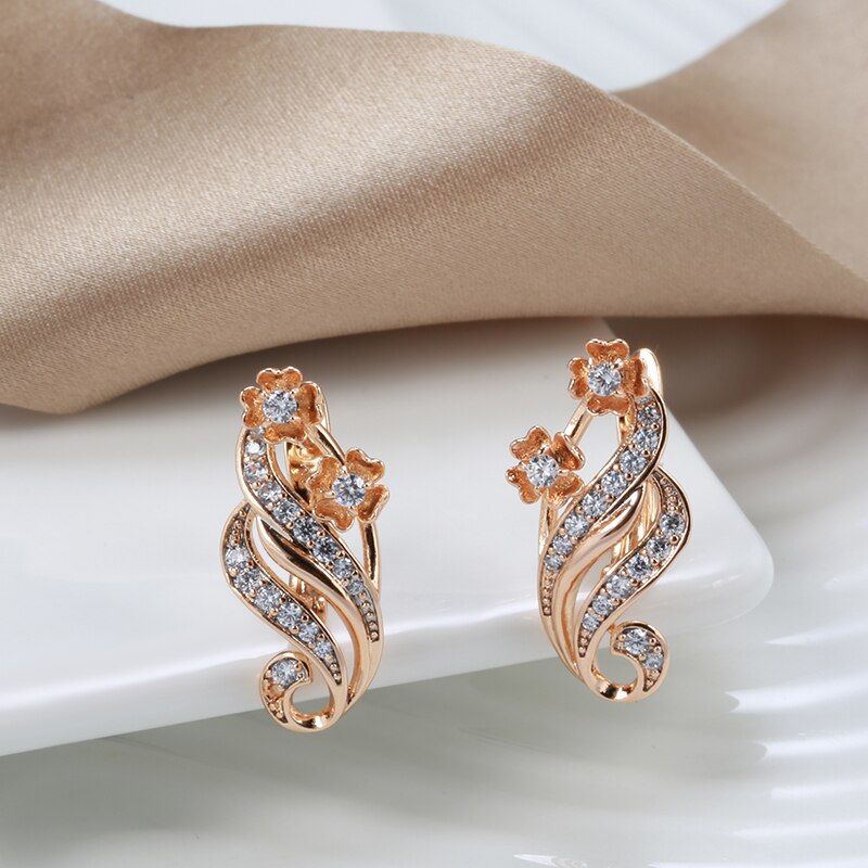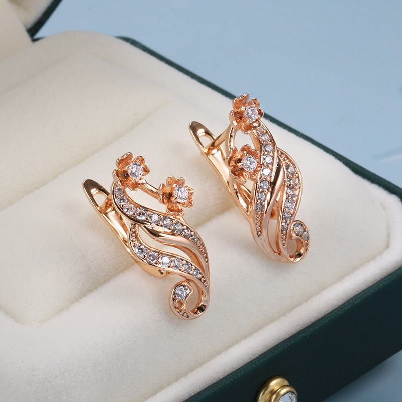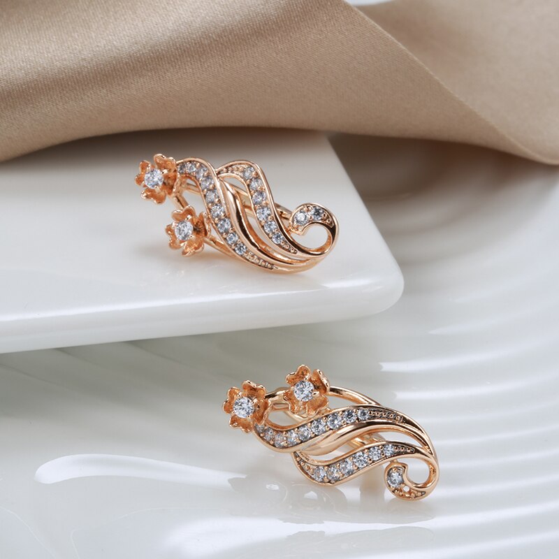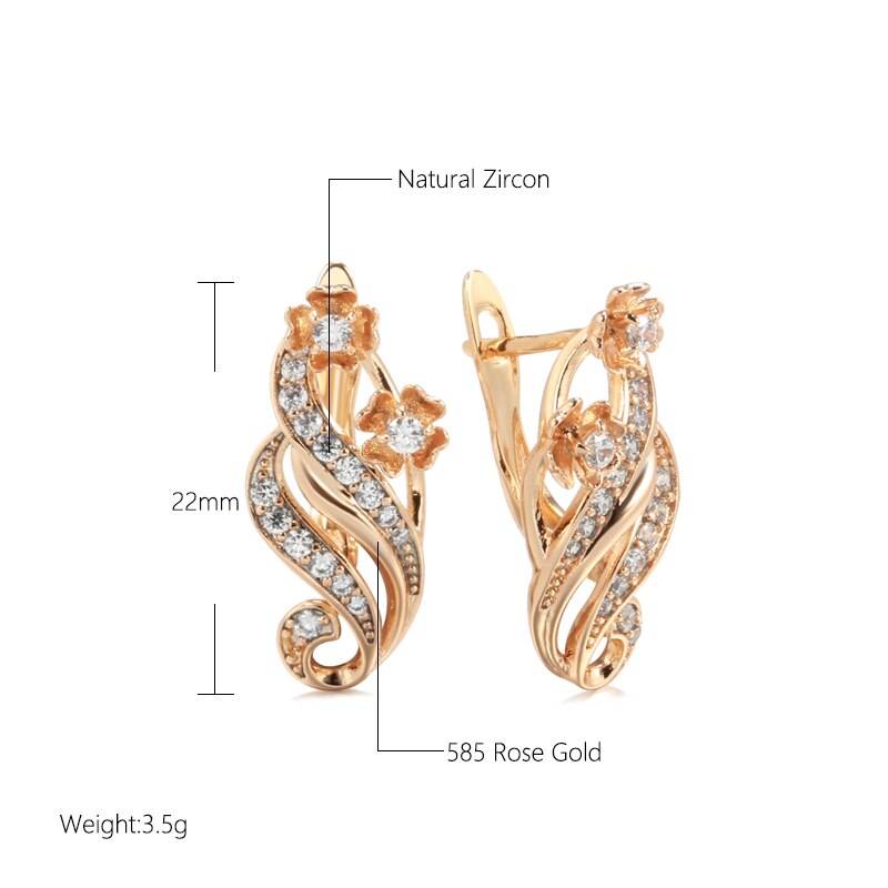 Pendientes colgantes de lujo con textura de flor y circonita blanca en oro 585. Pendientes de metal liso para mujer, joyería elegante para bodas y fiestas.