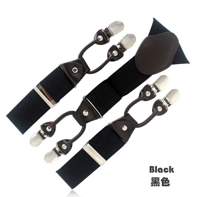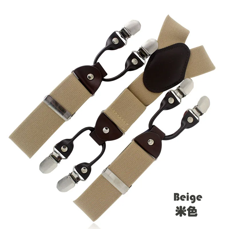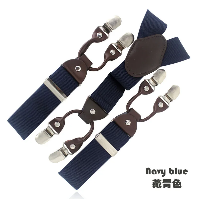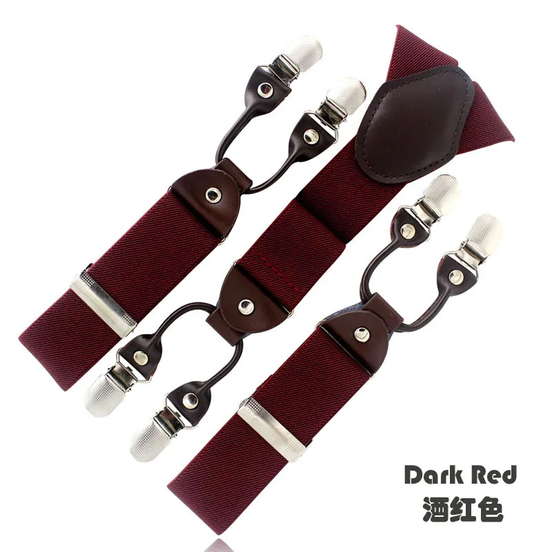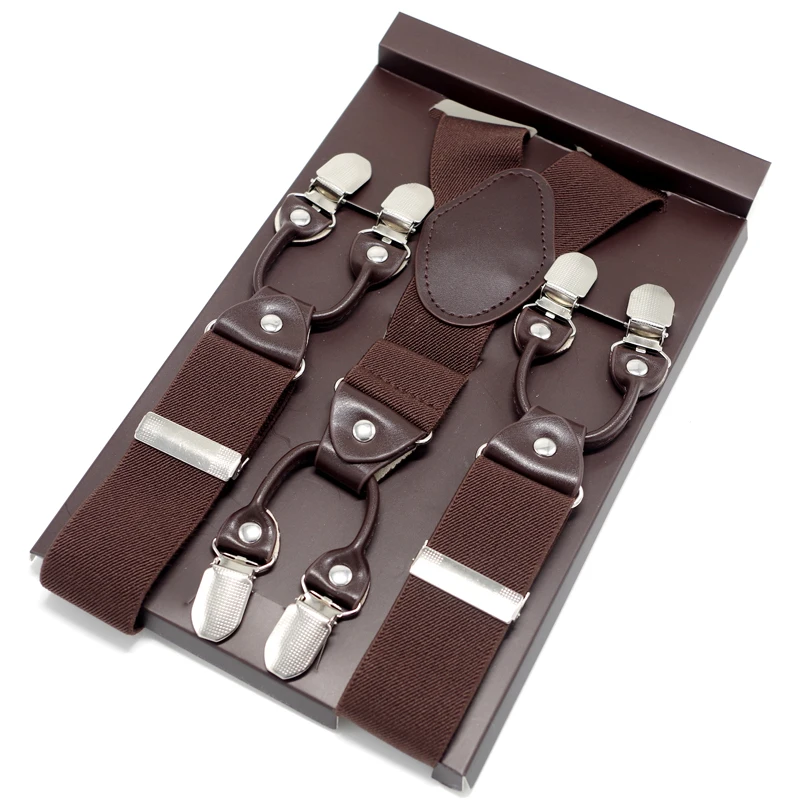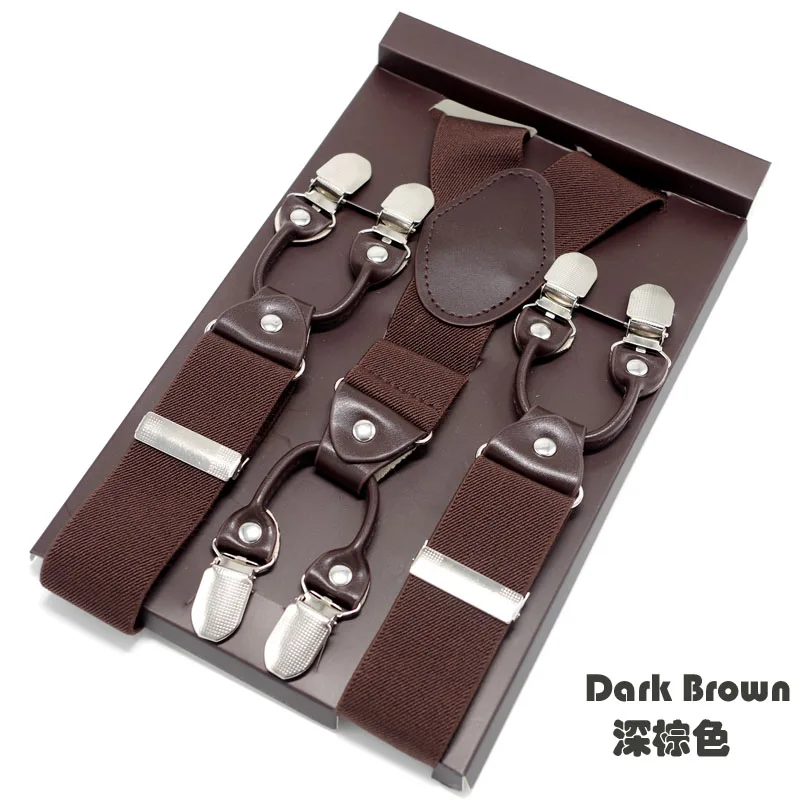 Tirantes masculinos Cinturón de cuero marrón oscuro 6 clips estilo western pantalones elásticos Casual suspensorio 6 clips-on tirantes 120cm MBD8604