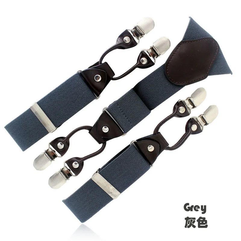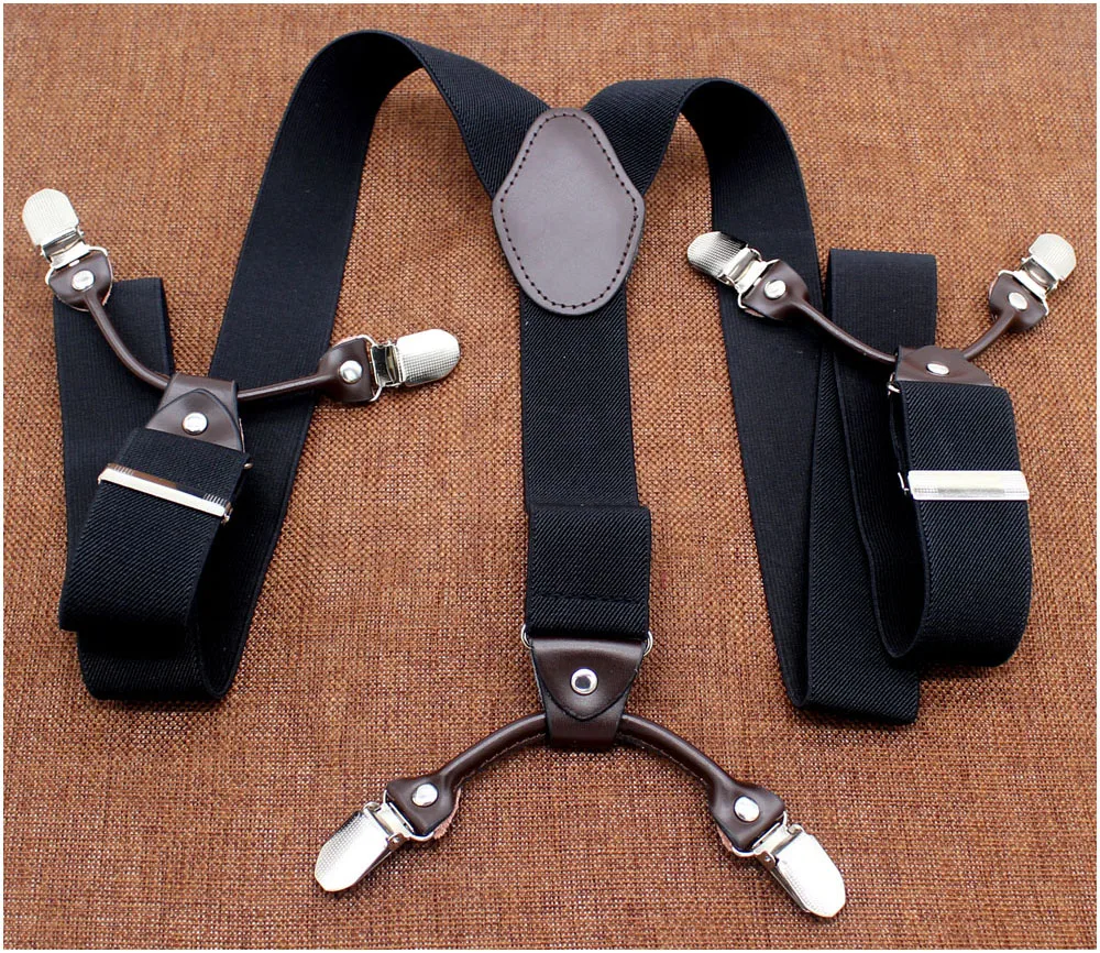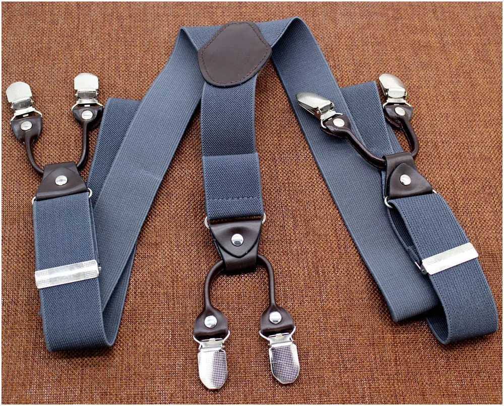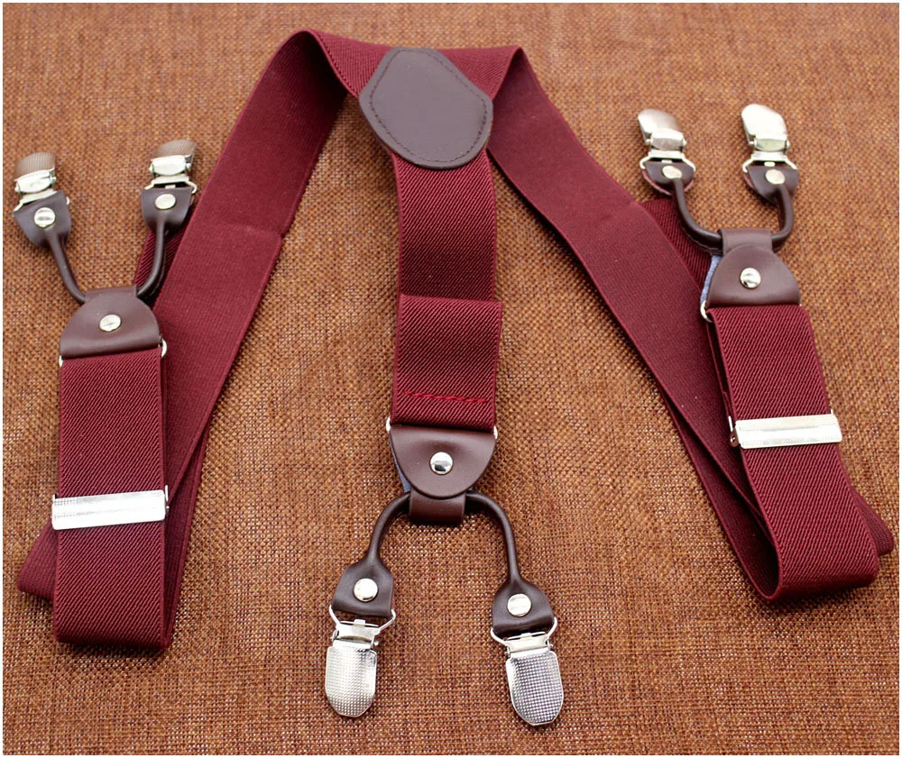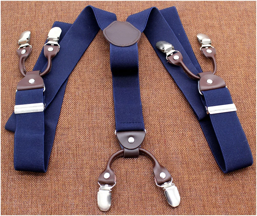 Tirantes masculinos Cinturón de cuero marrón oscuro 6 clips estilo western pantalones elásticos Casual suspensorio 6 clips-on tirantes 120cm MBD8604