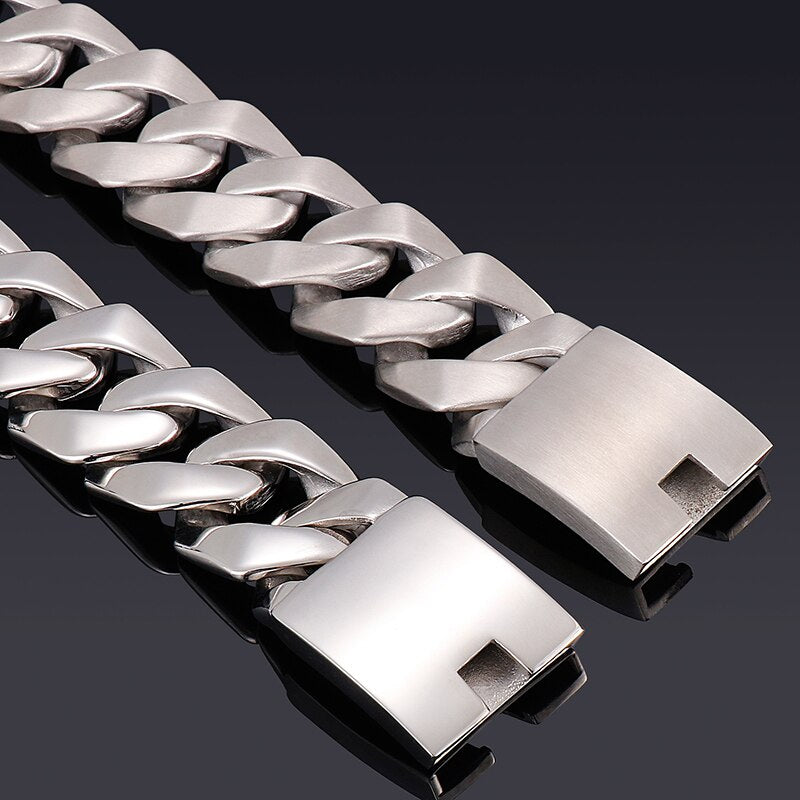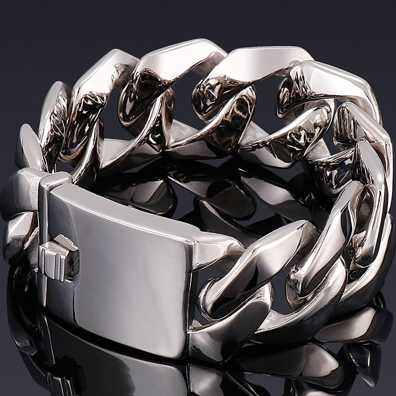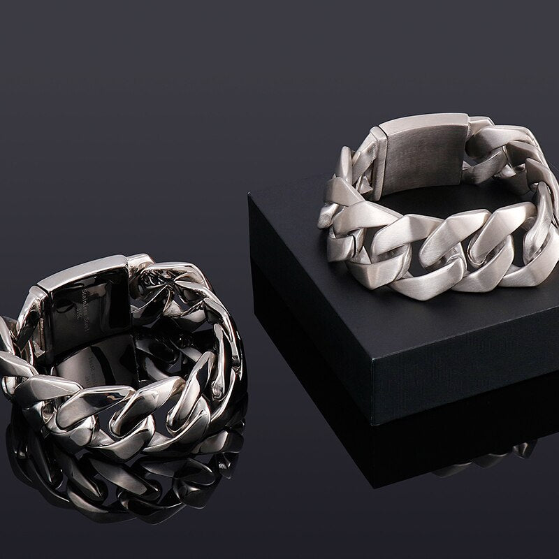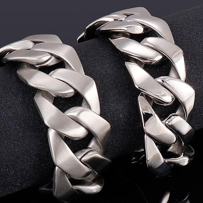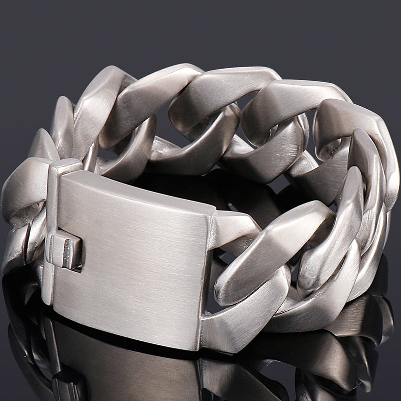 Pulsera de hombre de acero inoxidable pulido cepillado de 26 mm de ancho con eslabones curvos