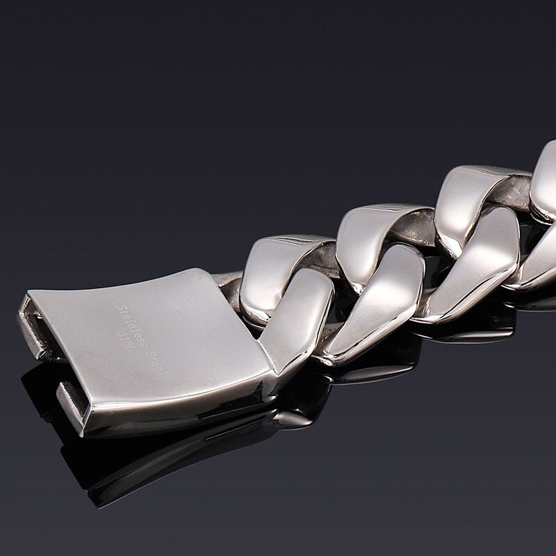 Pulsera de acero inoxidable pulido cepillado para hombre, cadena de eslabones de 26 mm de ancho, con grabado, accesorios de joyería.