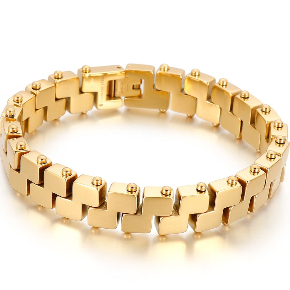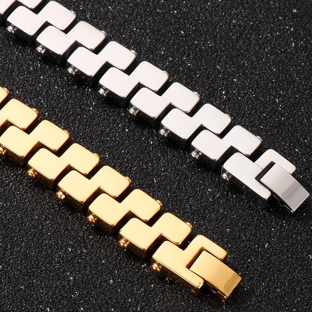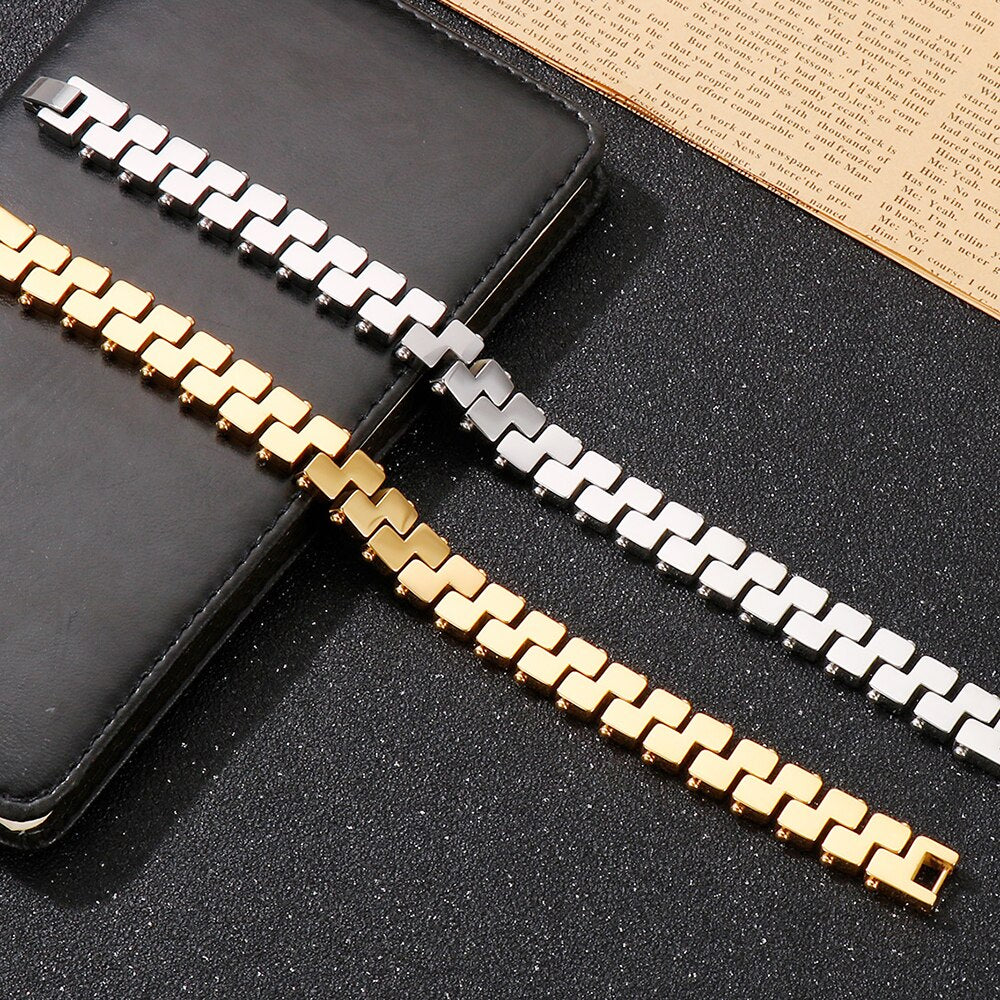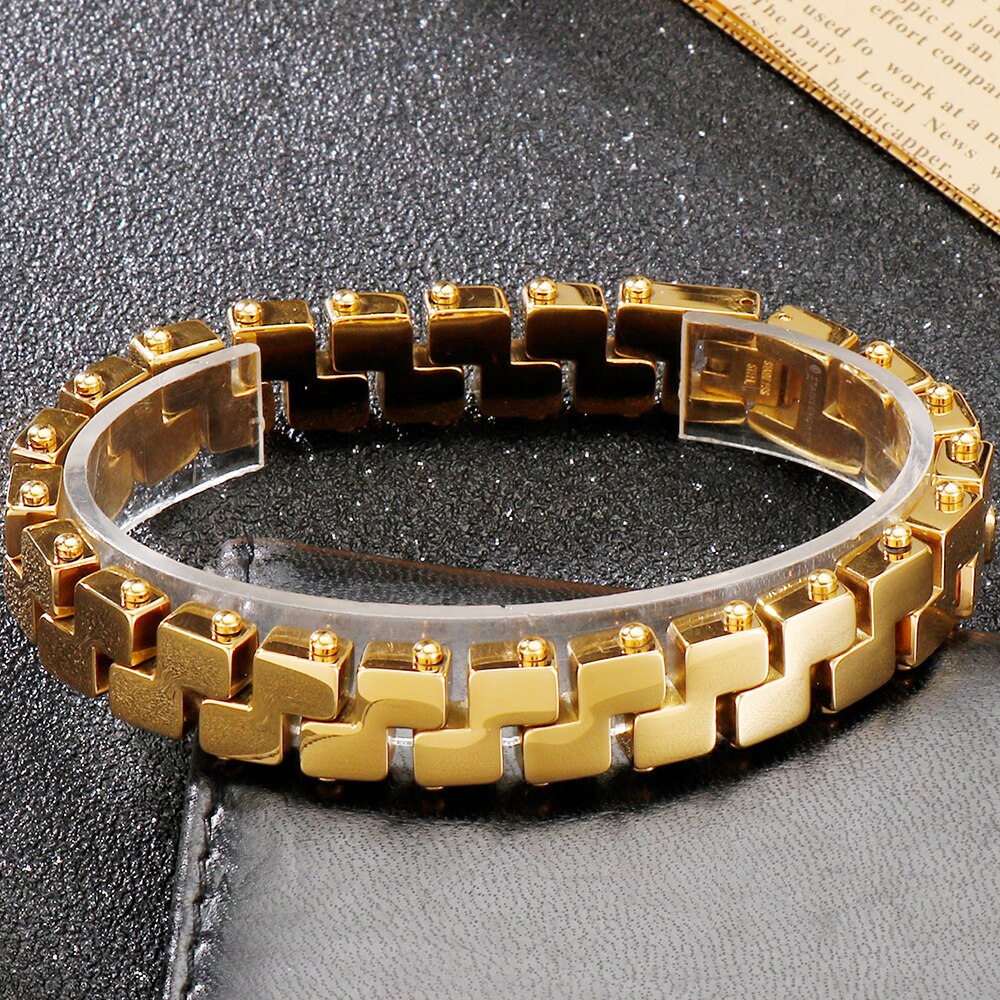 Pulsera de acero inoxidable chapada en oro para hombre, pulseras de muñeca, correas para hombre, accesorios de joyería de lujo.
