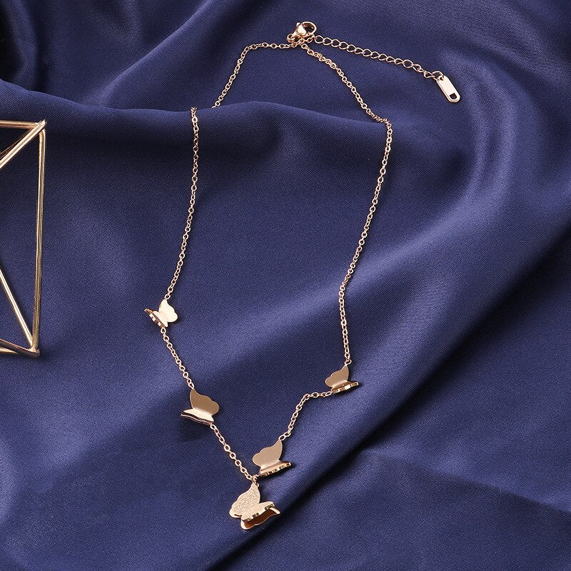 Collar de cadena de clavícula con mariposas de acero inoxidable 316L de oro 585 para mujer, joyería romántica para bodas.