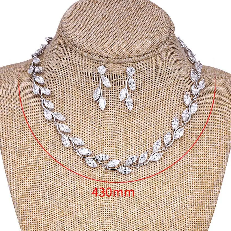Conjunto de joyas de boda con cristales de circonita cúbica de corte marquesa