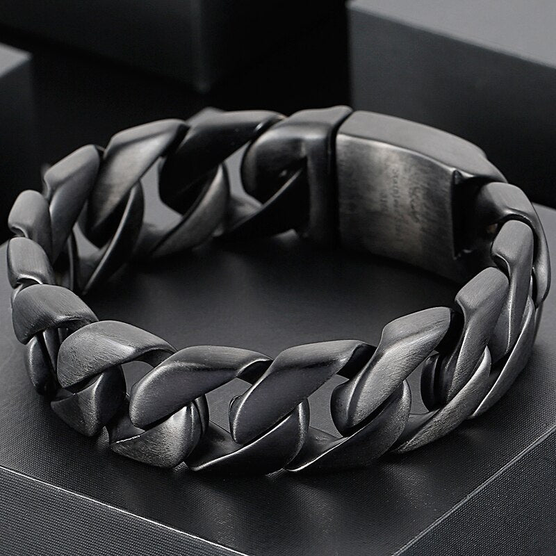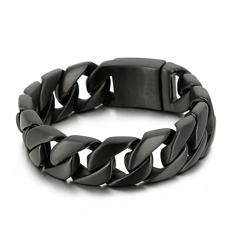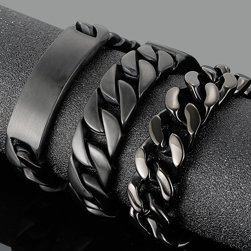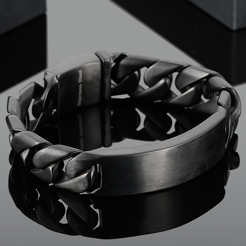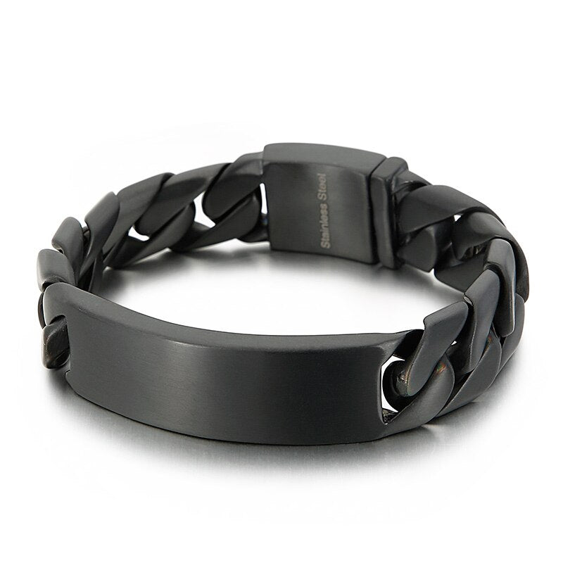 Pulsera masculina de acero inoxidable cepillado negro para hombre, pulseras grabables para hombre, joyería hipoalergénica sin níquel, regalos