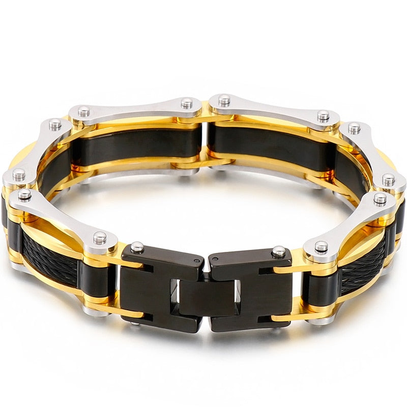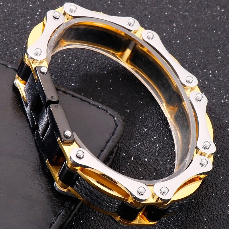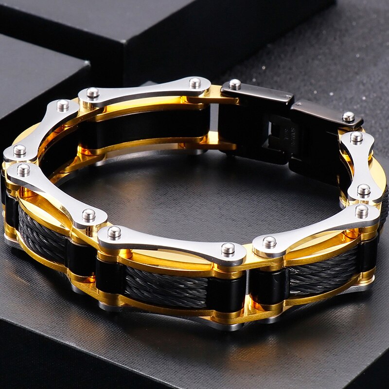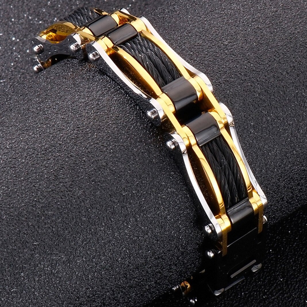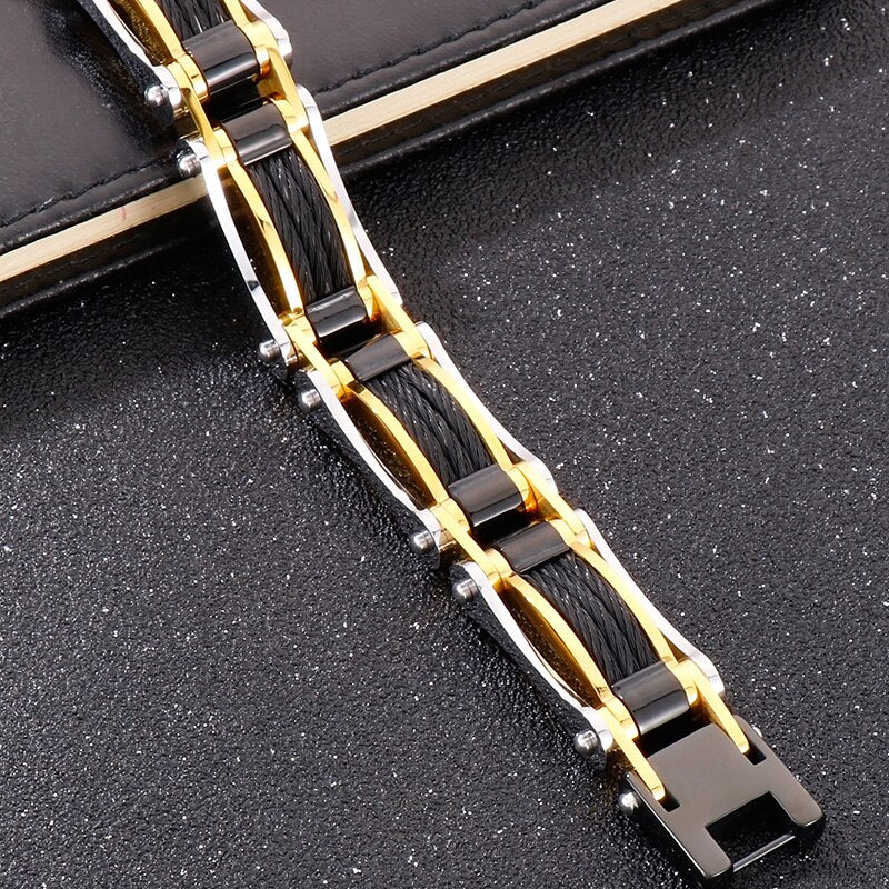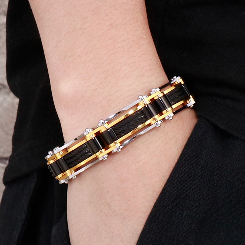Pulsera de cadena trenzada de acero inoxidable chapada en oro macizo para hombre