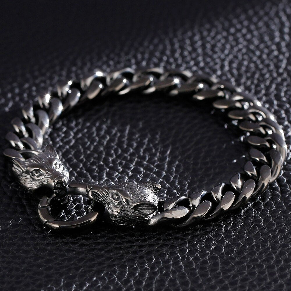 Pulsera de cabeza de lobo para hombre: joyería de mano para hombre