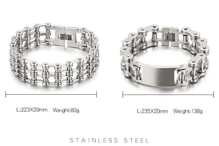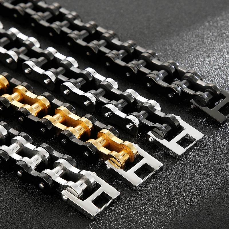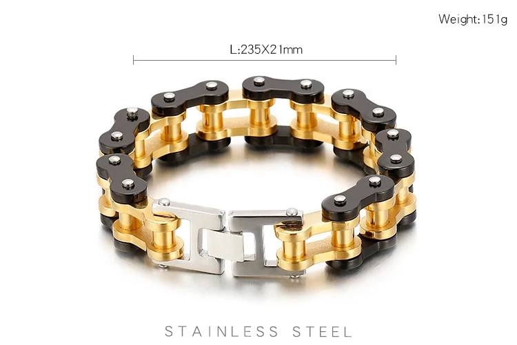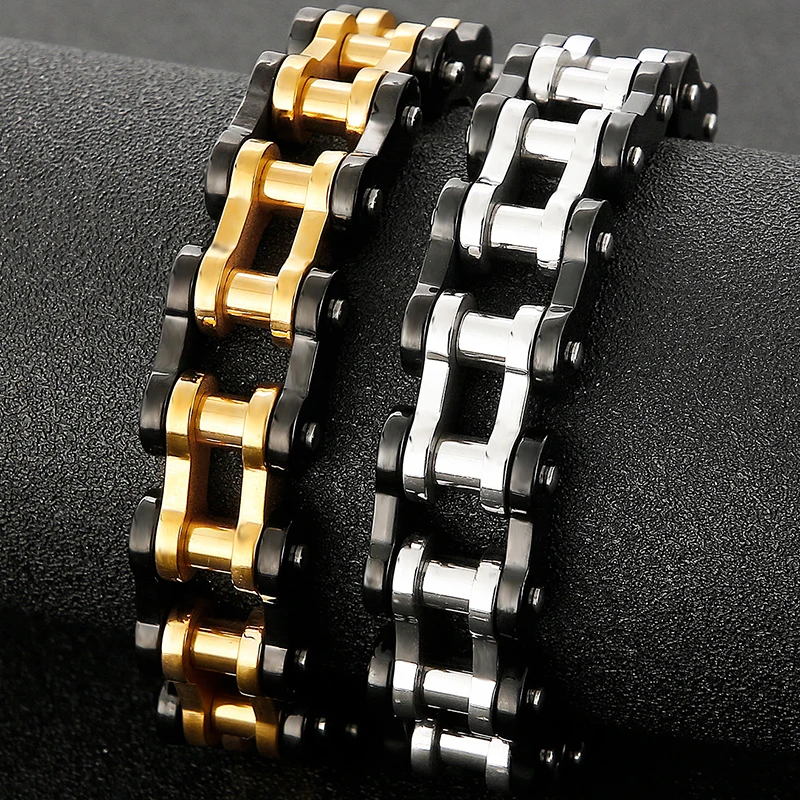Pulsera de cadena de motociclista para hombre, de acero inoxidable 316L bicolor, 20 mm de ancho, 21,5 cm y 23,5 cm de largo. Joya de la amistad.