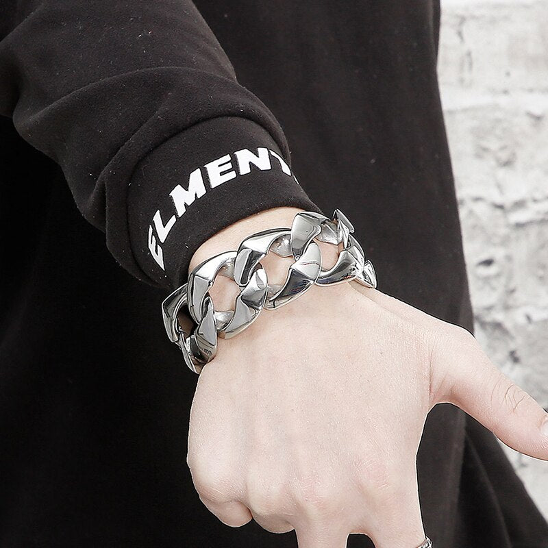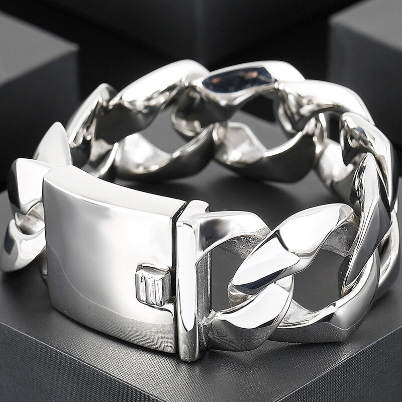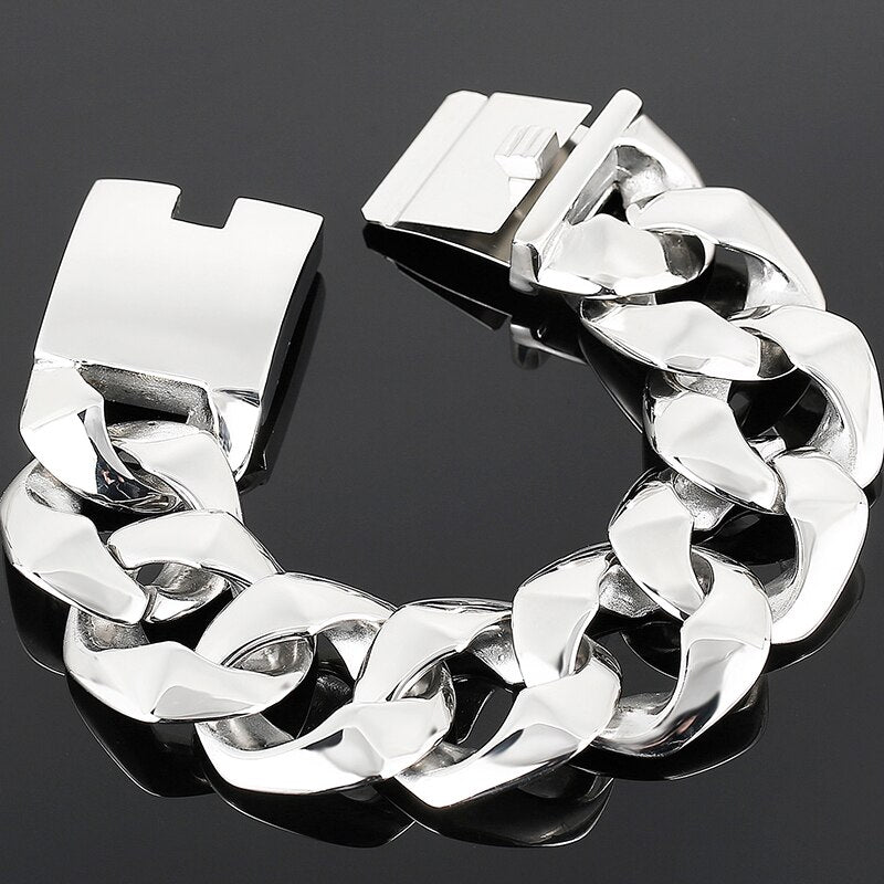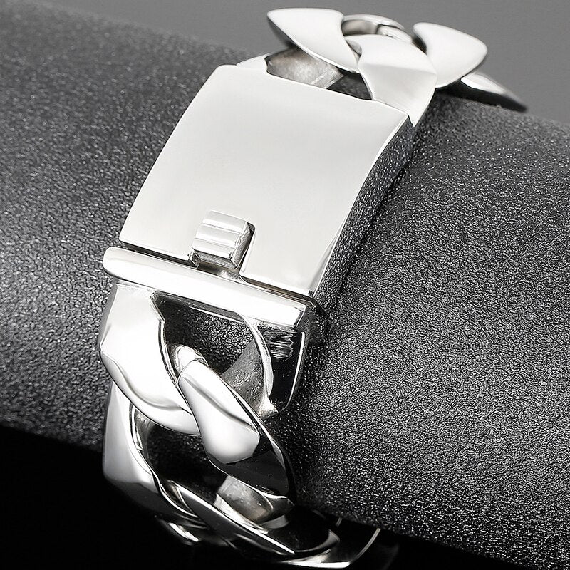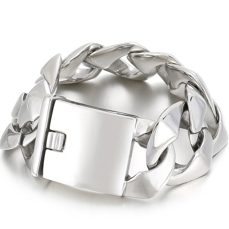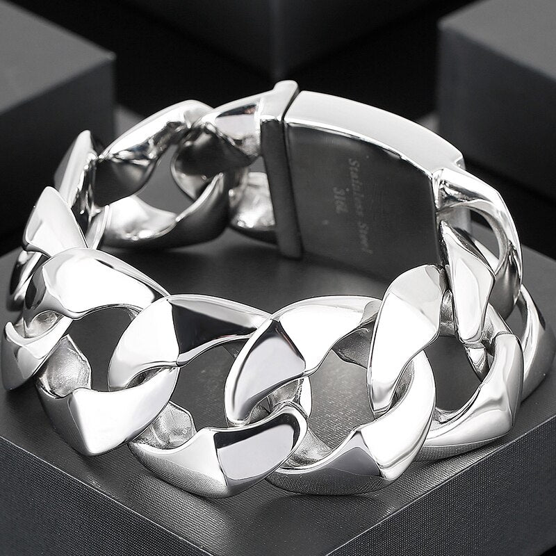 Pulseras enormes para hombre de acero inoxidable 316L pulido, cadena cubana de 31 mm y 9 pulgadas.