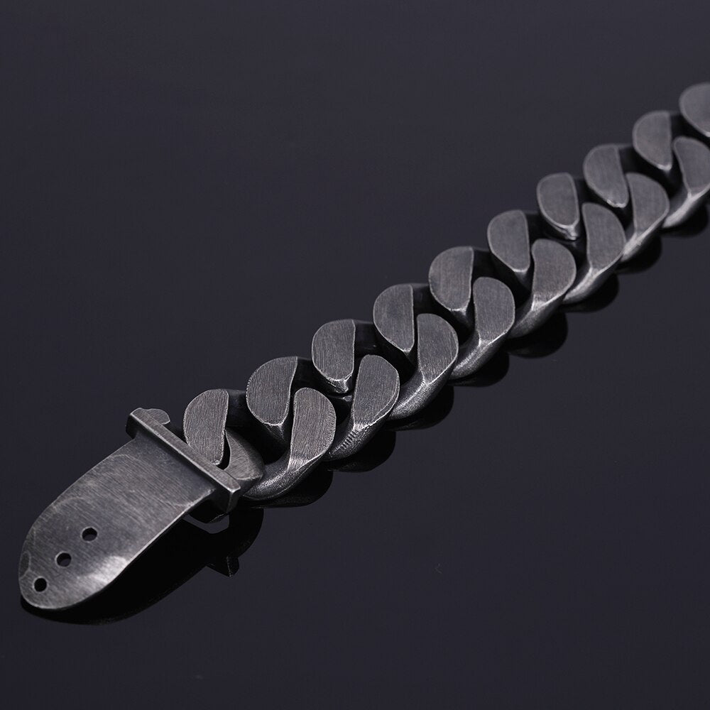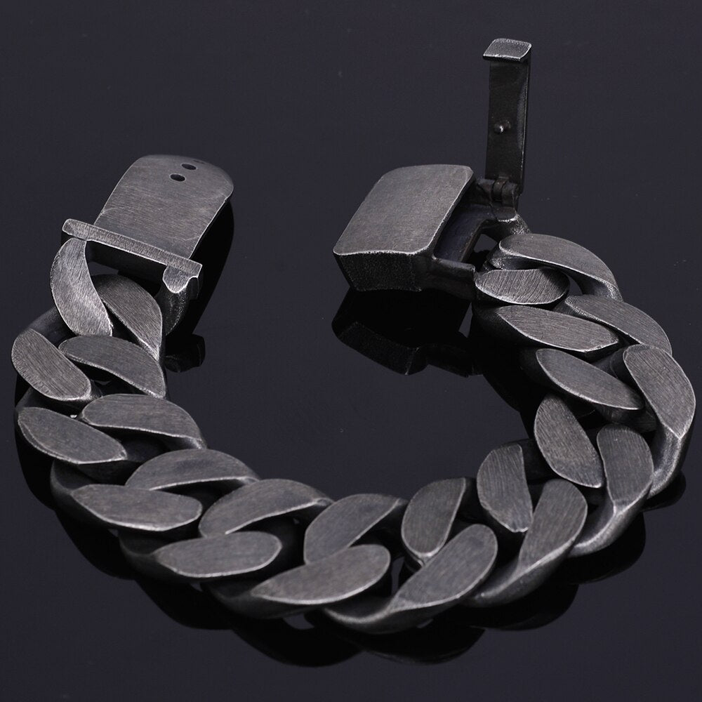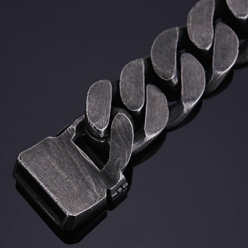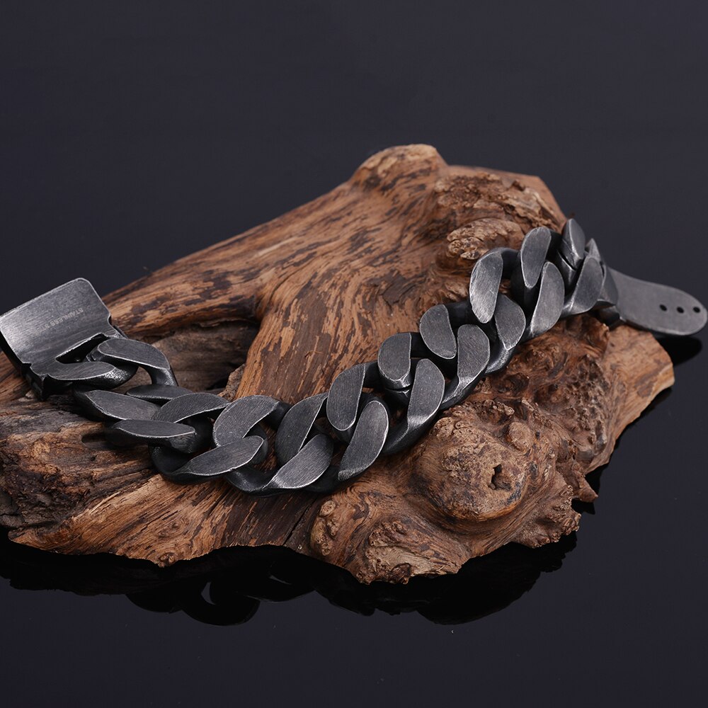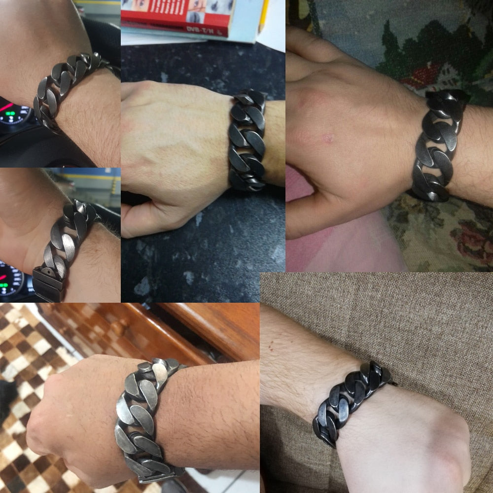 Pulsera masiva para hombre, estilo vintage, de acero inoxidable negro, con hebilla de cinturón, de metal.