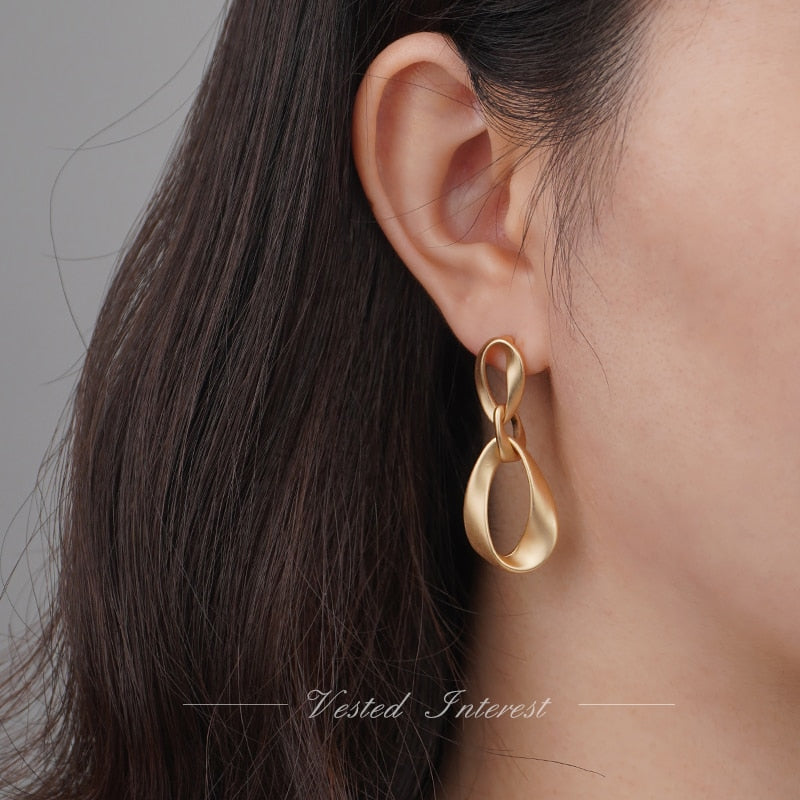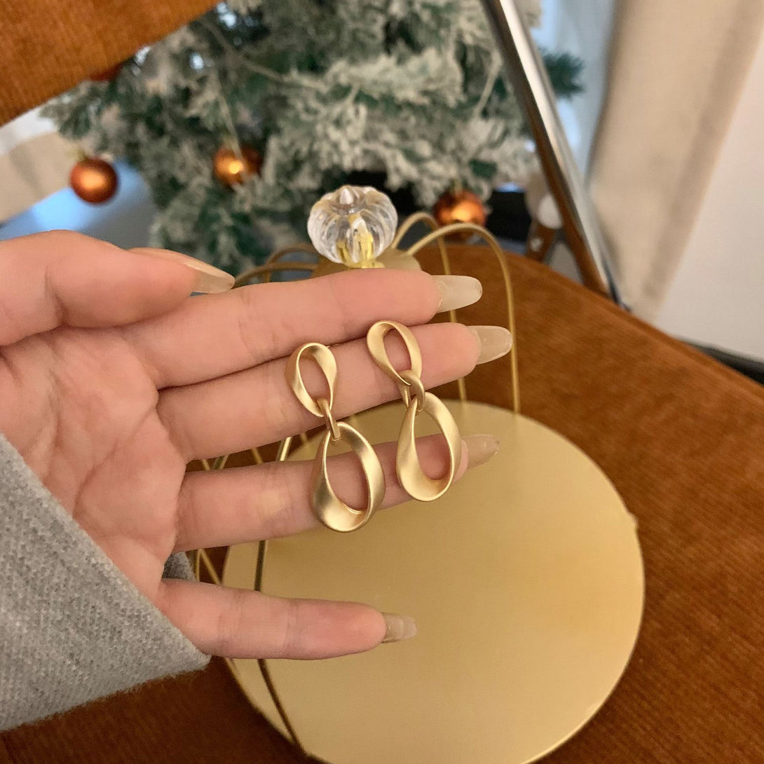 Pendientes de moda - Pendientes de clip redondos irregulares de color dorado mate con diseño simple y temperamento en forma de gota de agua, sin perforaciones para mujer