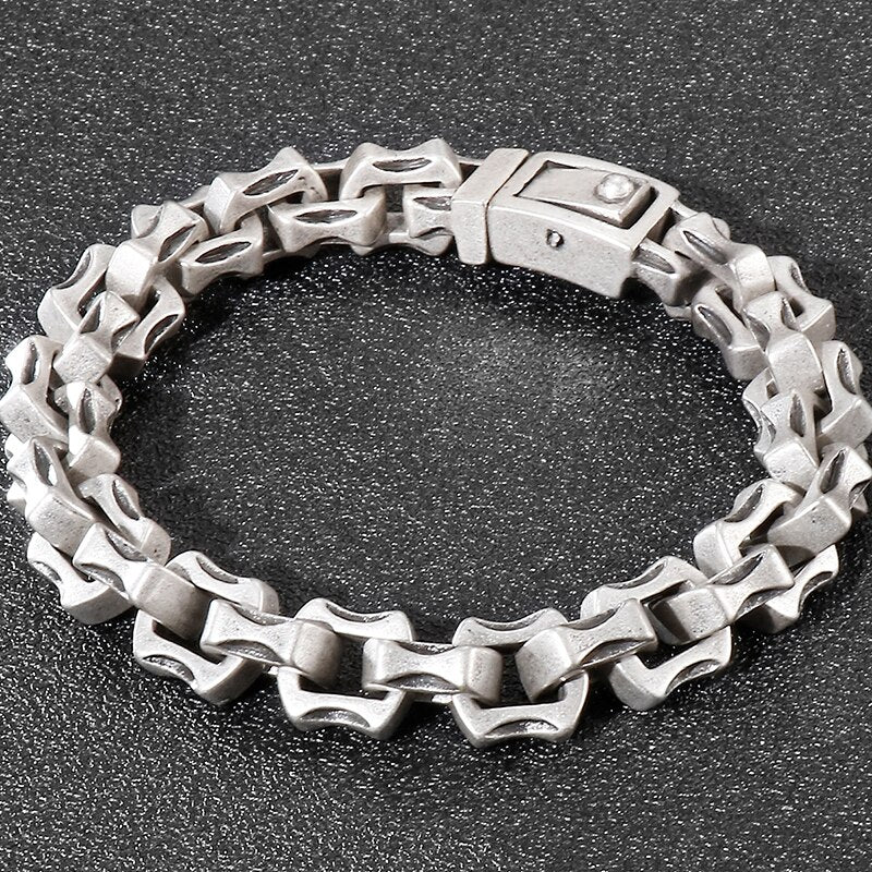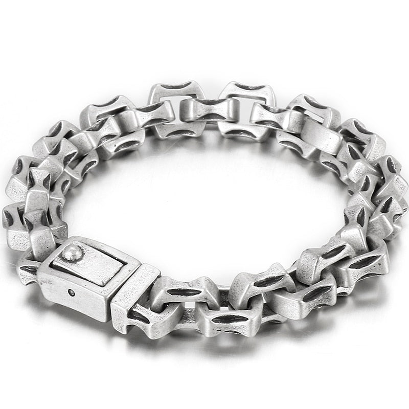Pulsera de eslabones de caja de acero inoxidable cepillado Matter para hombre, 8,26 pulgadas, color plata antigua, joyería de metal para hombre