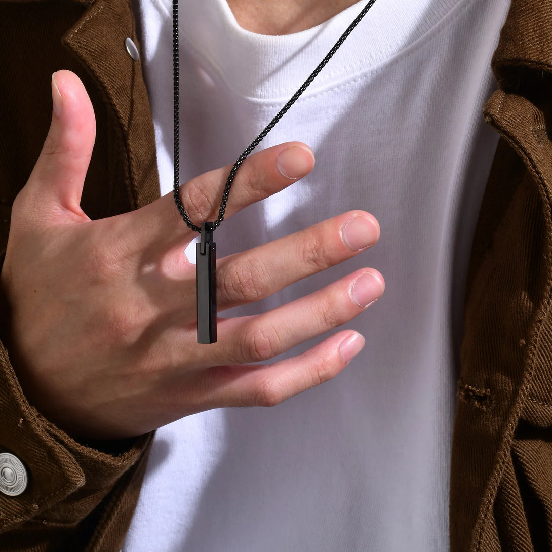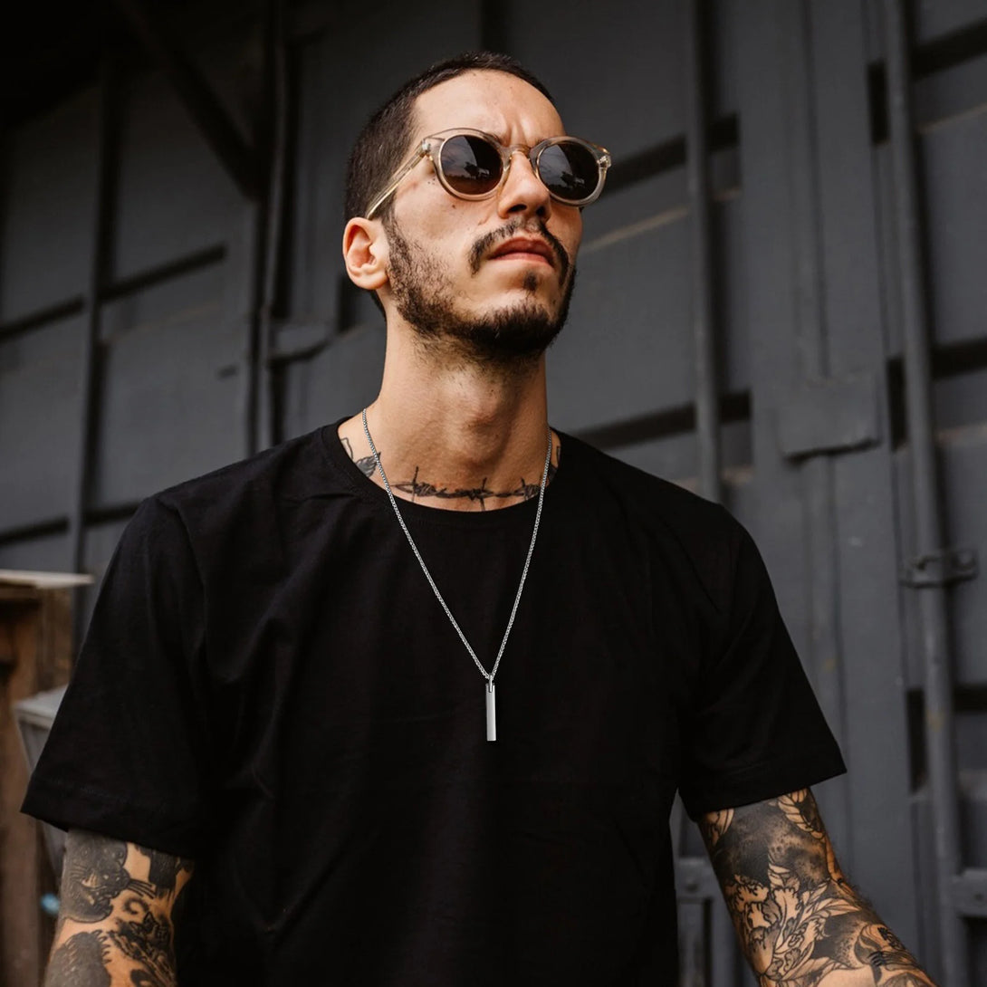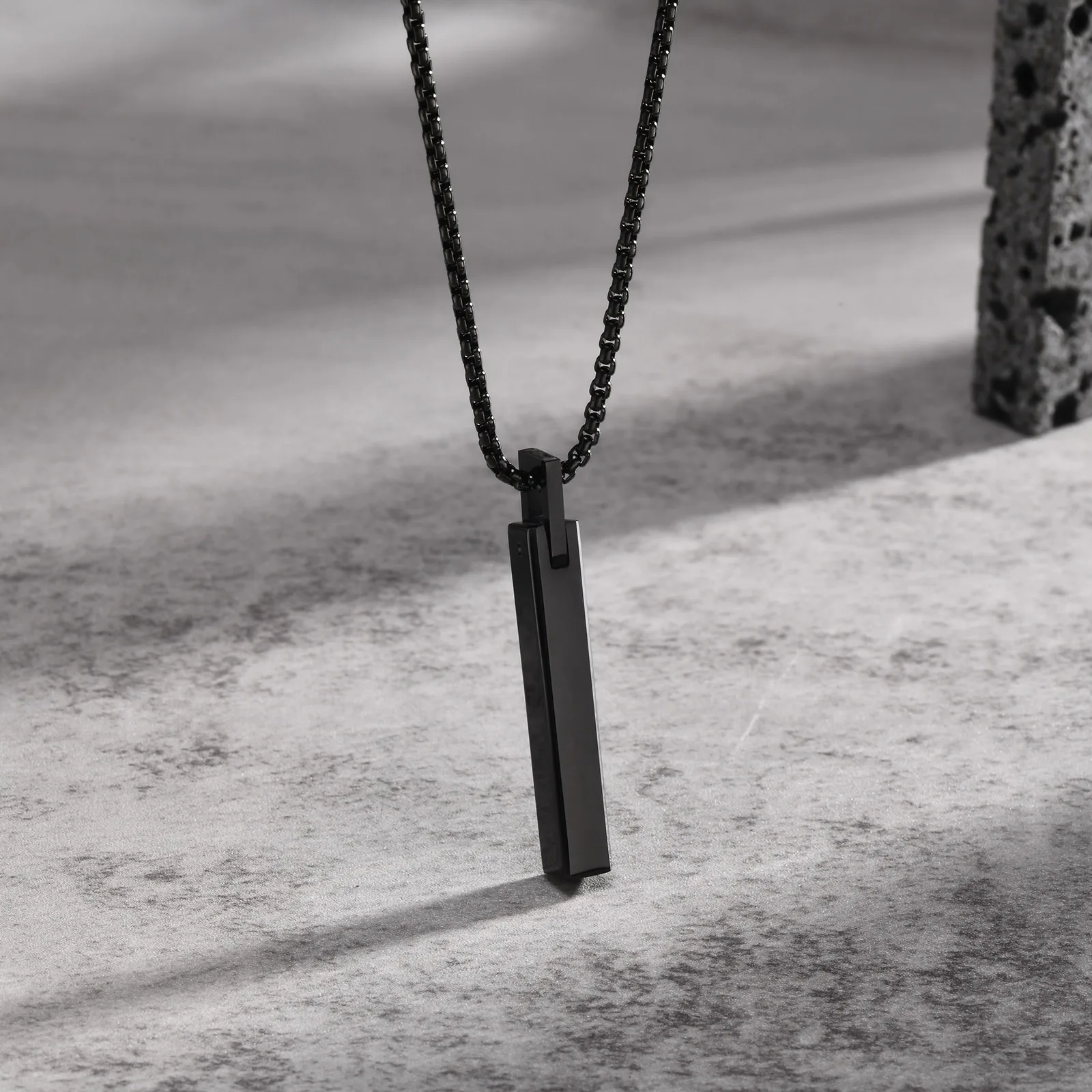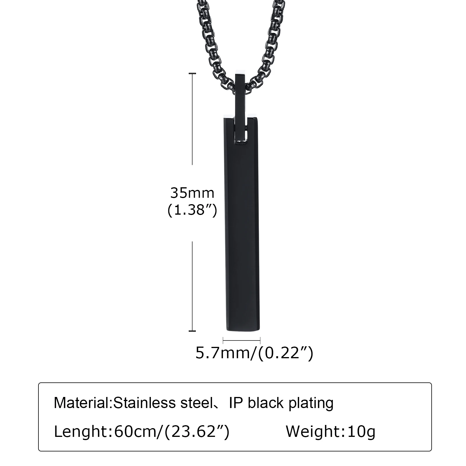 Collar con colgante geométrico de acero inoxidable 3D para hombre, diseño de barra vertical, sencillo e impermeable, ideal como regalo, con cadena de caja.