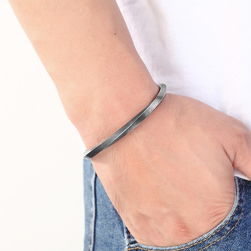 Brazalete de acero inoxidable vintage para hombre, estilo cubano, color negro, joyería de moda para novios, accesorio de regalo.