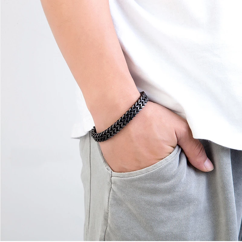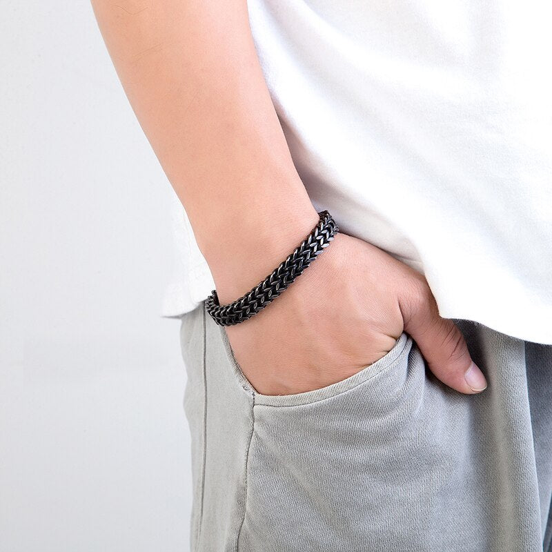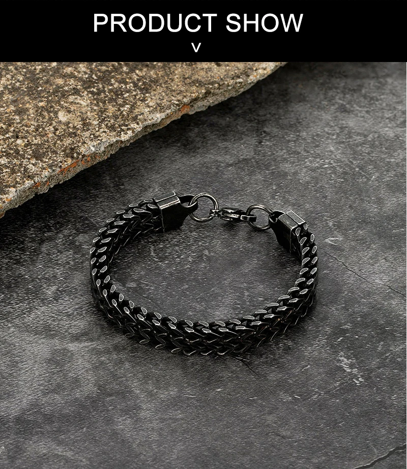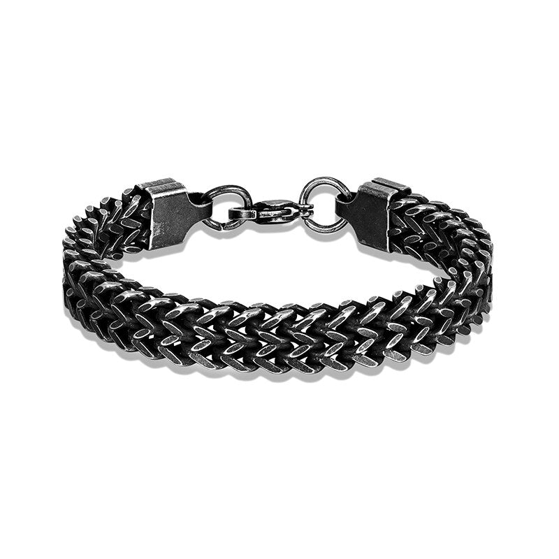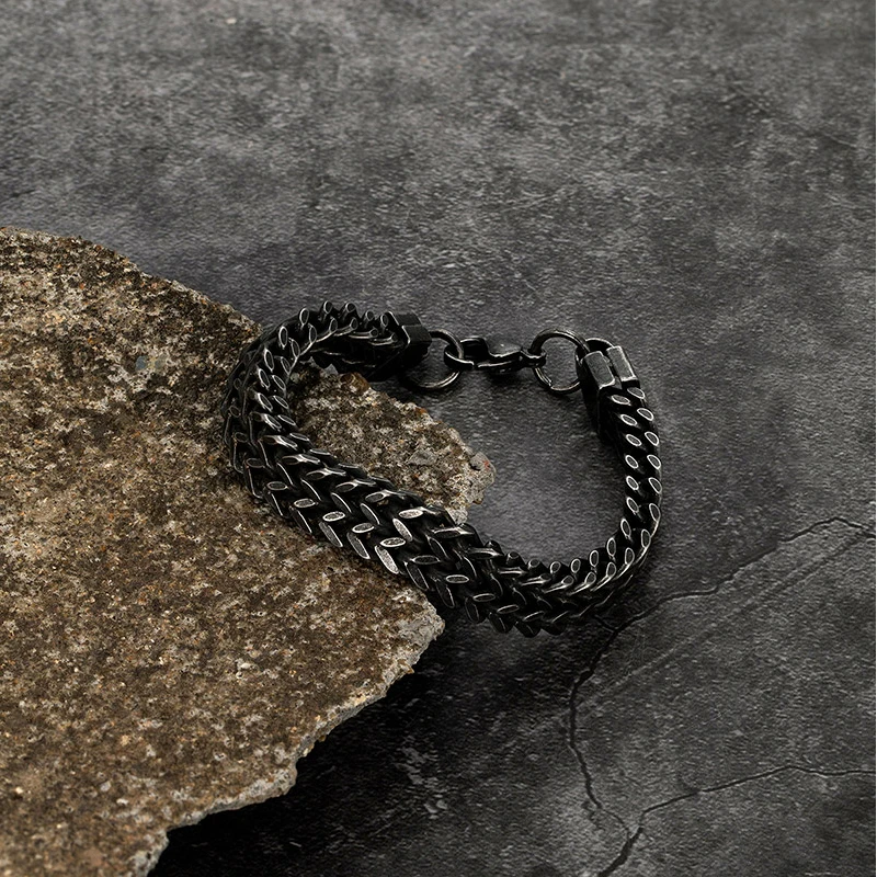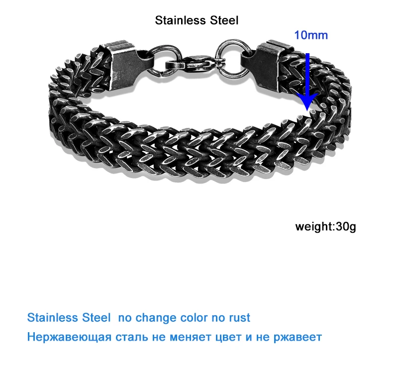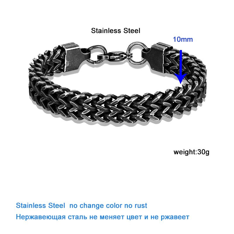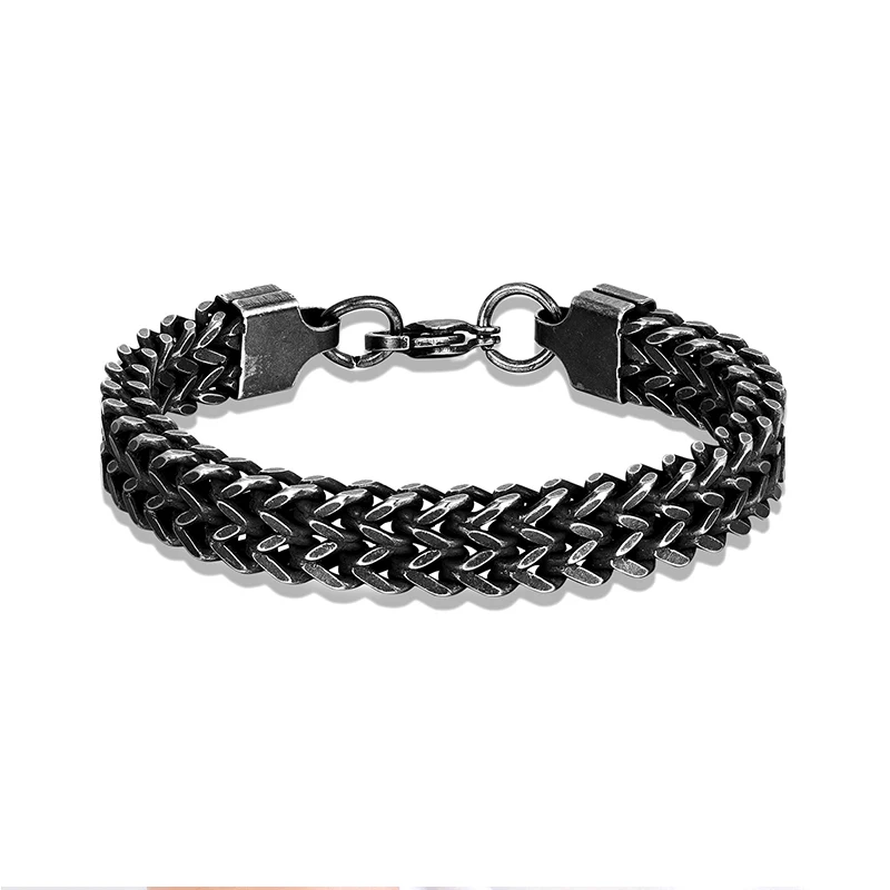 Pulsera de hombre de 10 mm con eslabones de cadena negros vintage estilo punk rock de acero inoxidable, joyería hecha a mano para motocicleta.