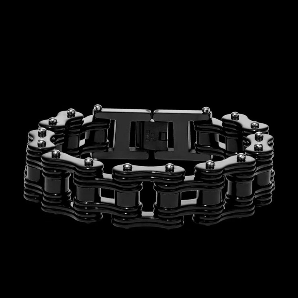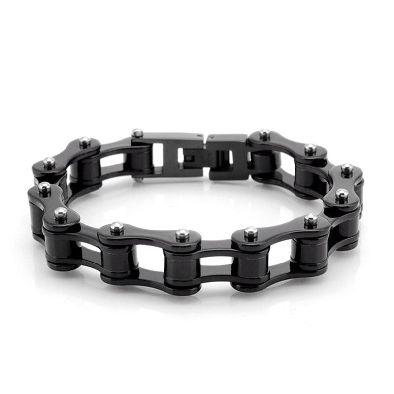 Pulseras/Brazaletes para Hombre, de Acero Inoxidable, con Eslabones de Motocicleta y Bicicleta de Motorista Negra, para Hombre