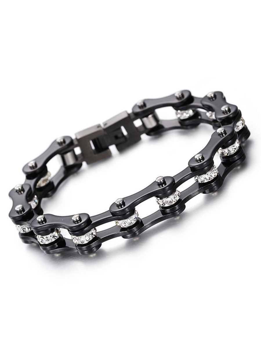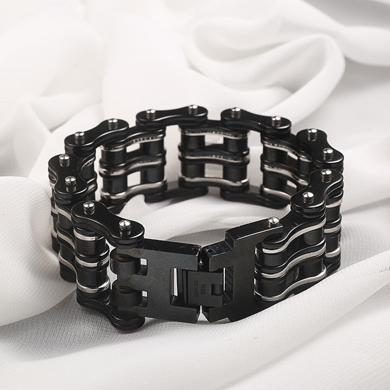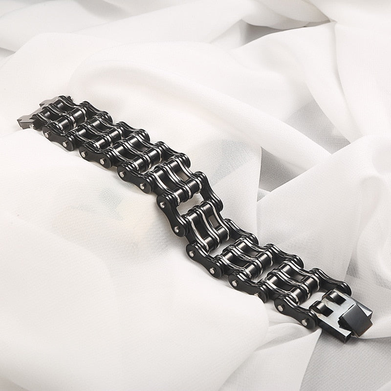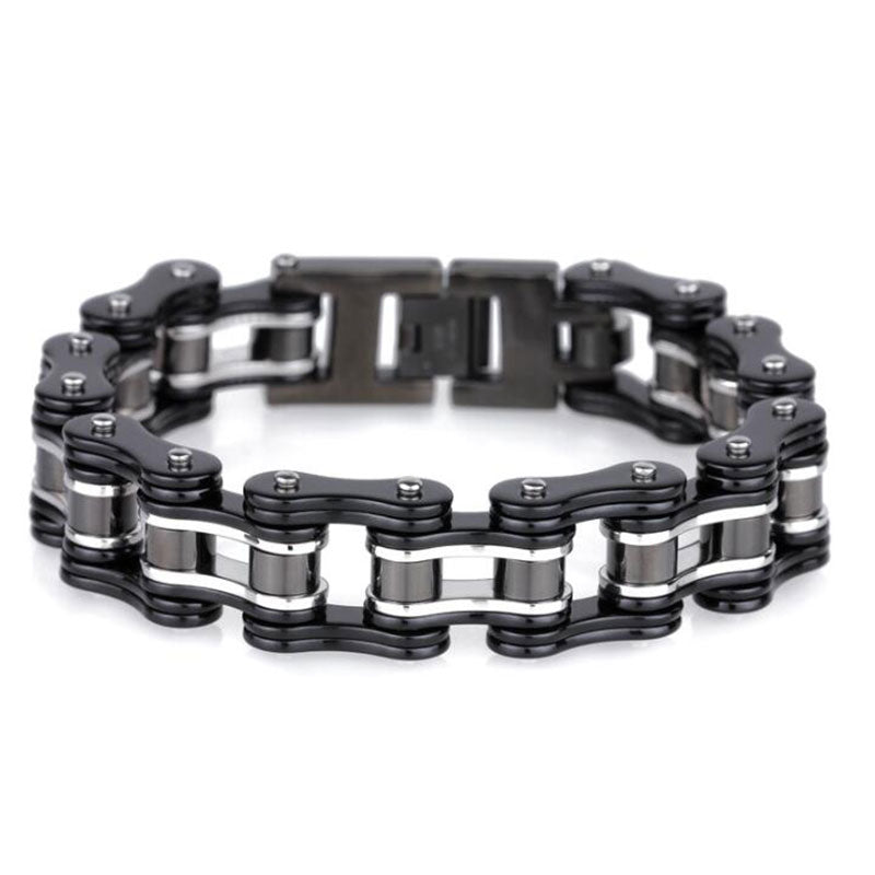 Pulseras para hombre, brazaletes de cadena pesada, estilo punk, negro, para motociclistas, bicicletas y motocicletas.