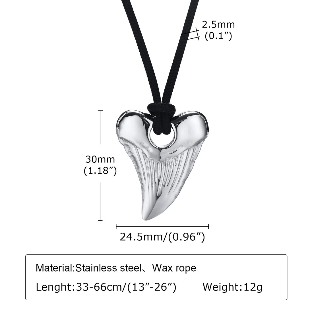 Collar con colgante de diente de tiburón estilo punk para hombre, de acero inoxidable, resistente al agua, con cadena ajustable de color negro.