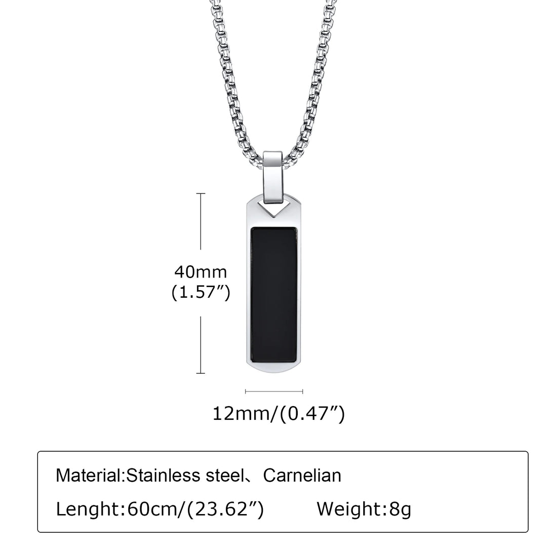 Collares de barra geométrica para hombre, colgante de piedra natural esmaltada negra con cadena de acero inoxidable, elegante y sencillo collar masculino.