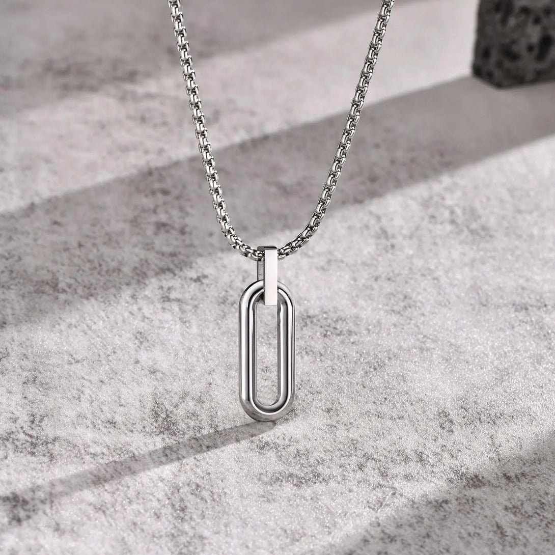 Collares geométricos para hombre, colgante de acero inoxidable resistente al agua con forma de alfiler hueco.