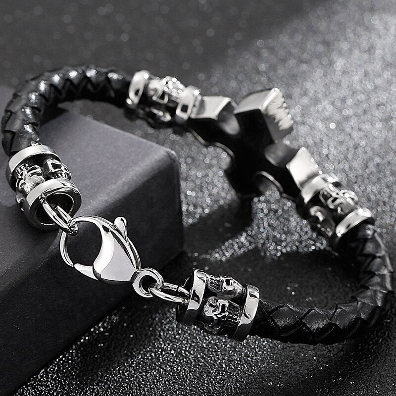 Pulsera de cuero para hombre con cruz, estilo punk rock, con calavera, accesorios de joyería.