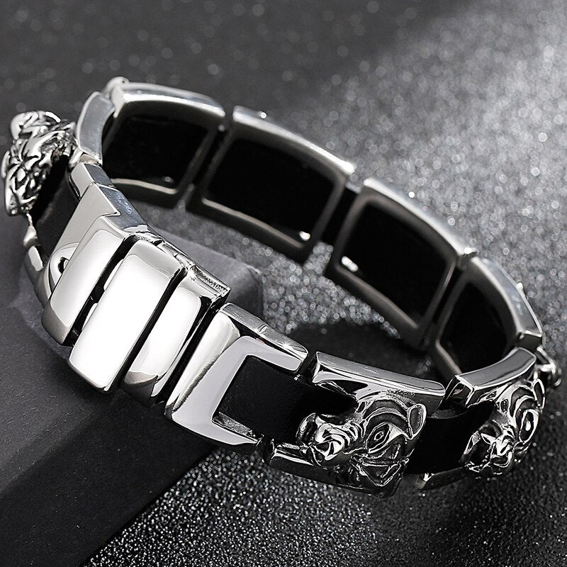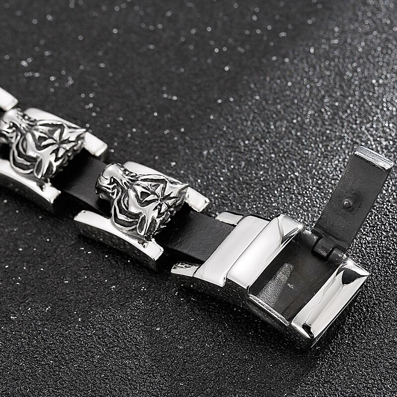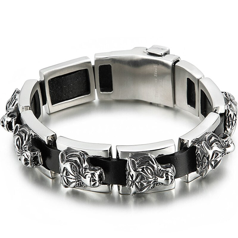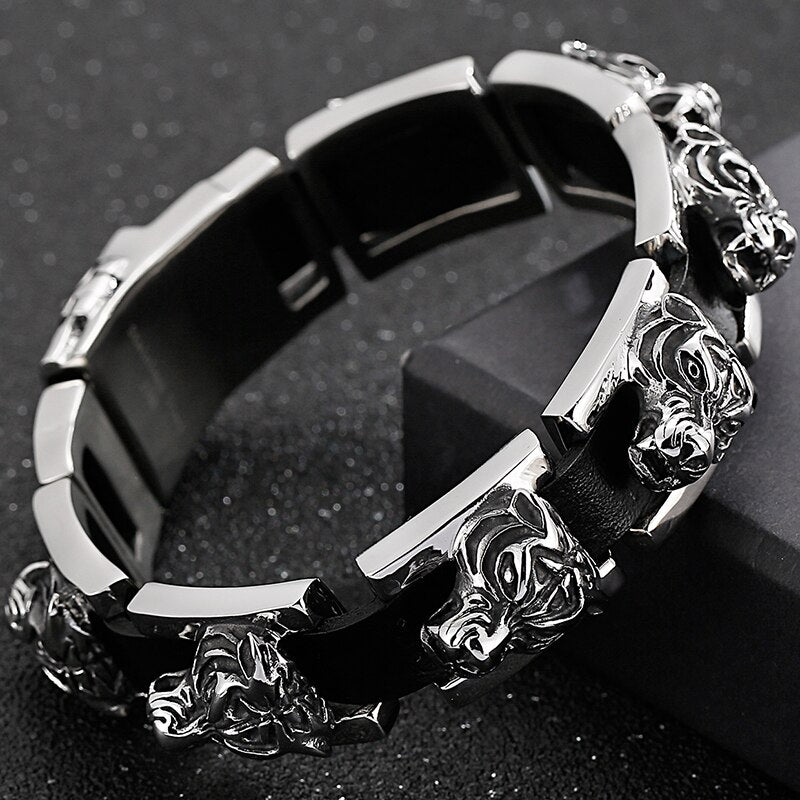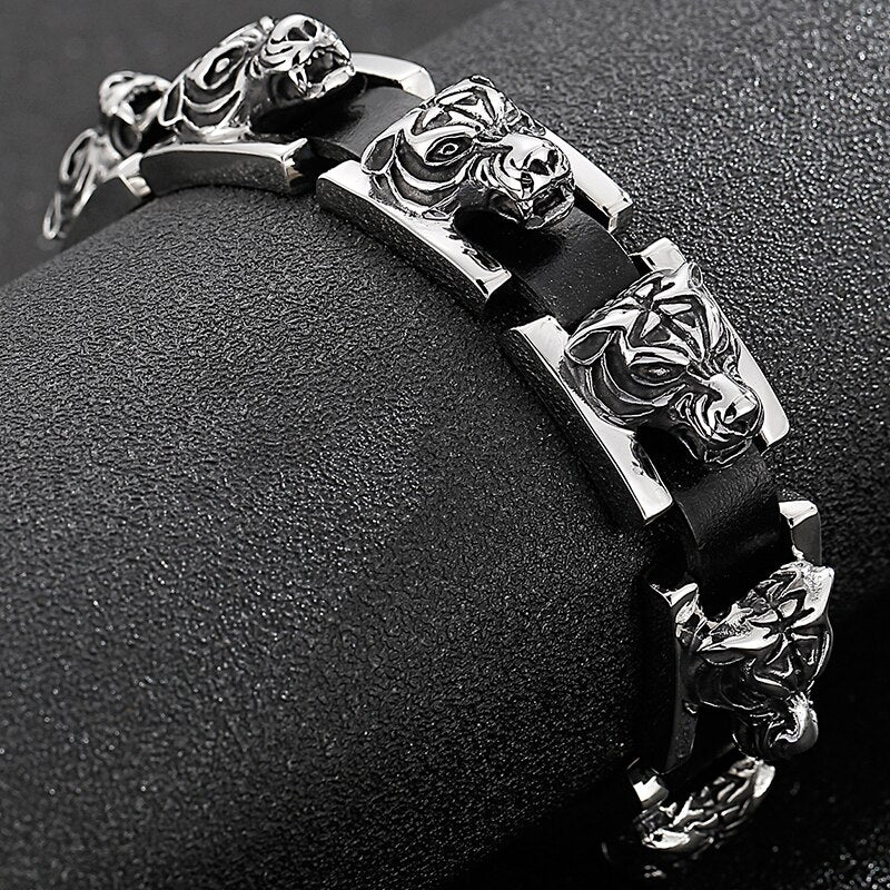 Pulseras de cuero para hombre: Pulsera de cadena con cabeza de tigre para hombre