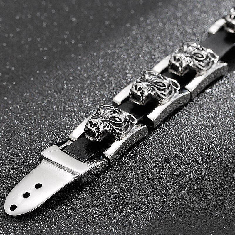 Pulseras de cuero para hombre, cadena de acero inoxidable de 19 mm con cabeza de tigre.
