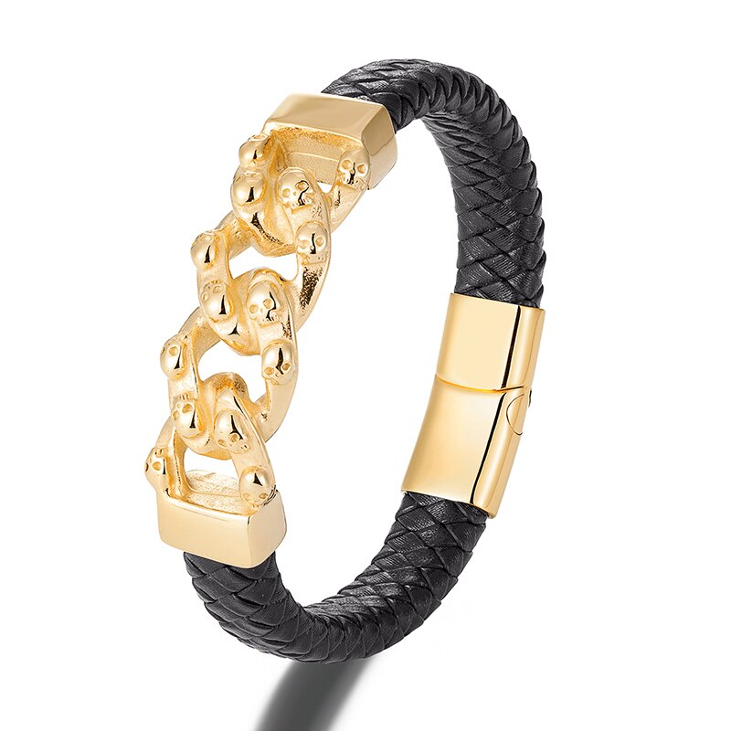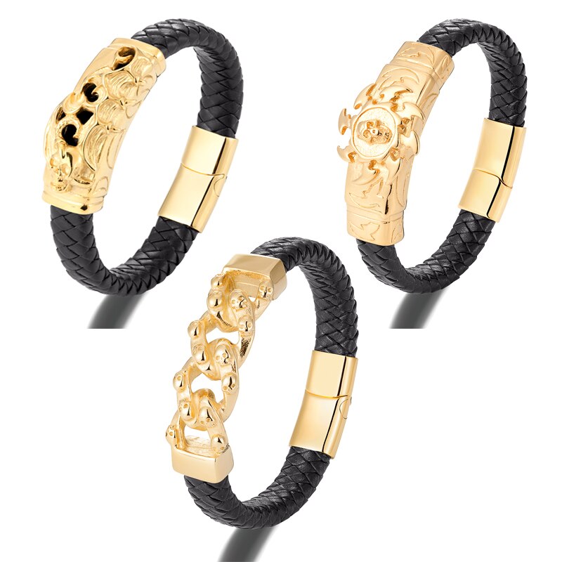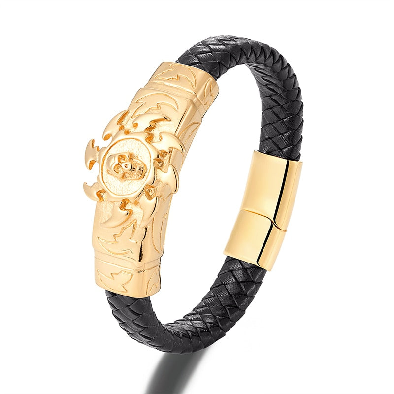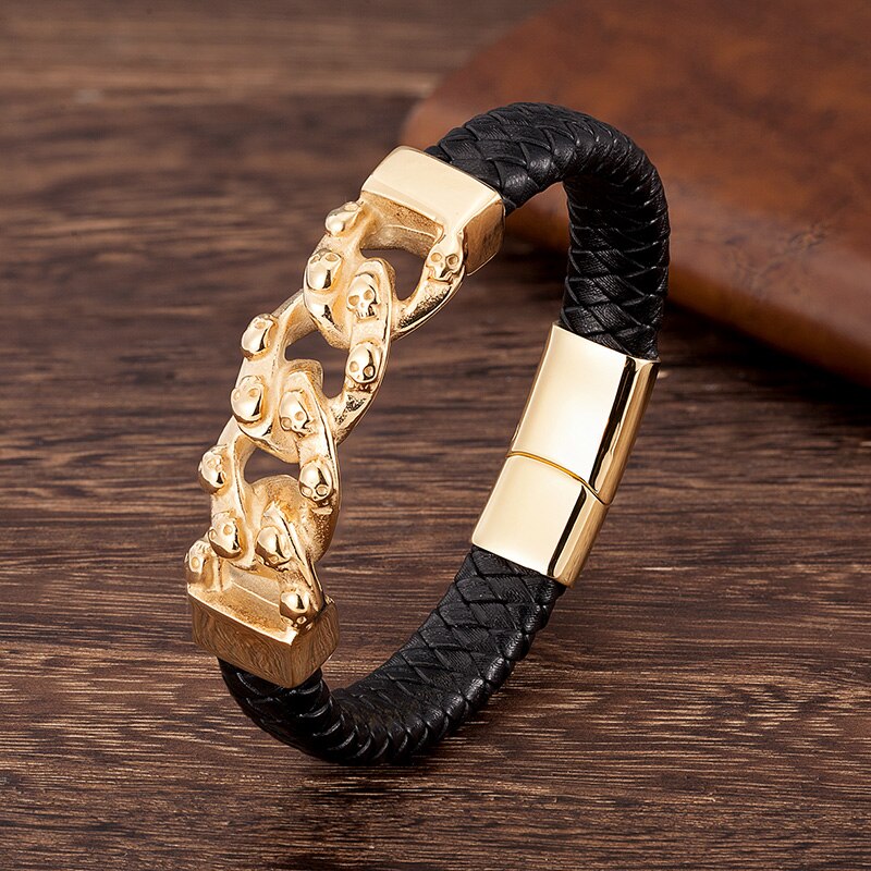 Pulsera punk para hombre con hebilla magnética, brazaletes de calavera dorada de roca, accesorios de cuero de vaca, pulseras con dijes, joyería de acero inoxidable, regalos.