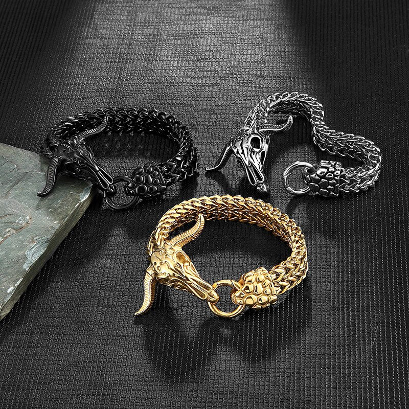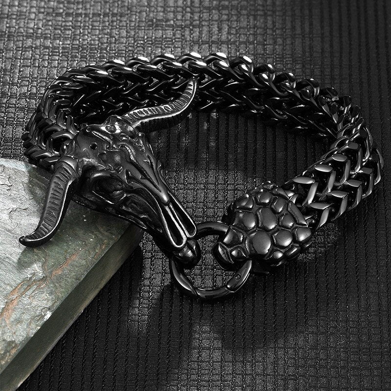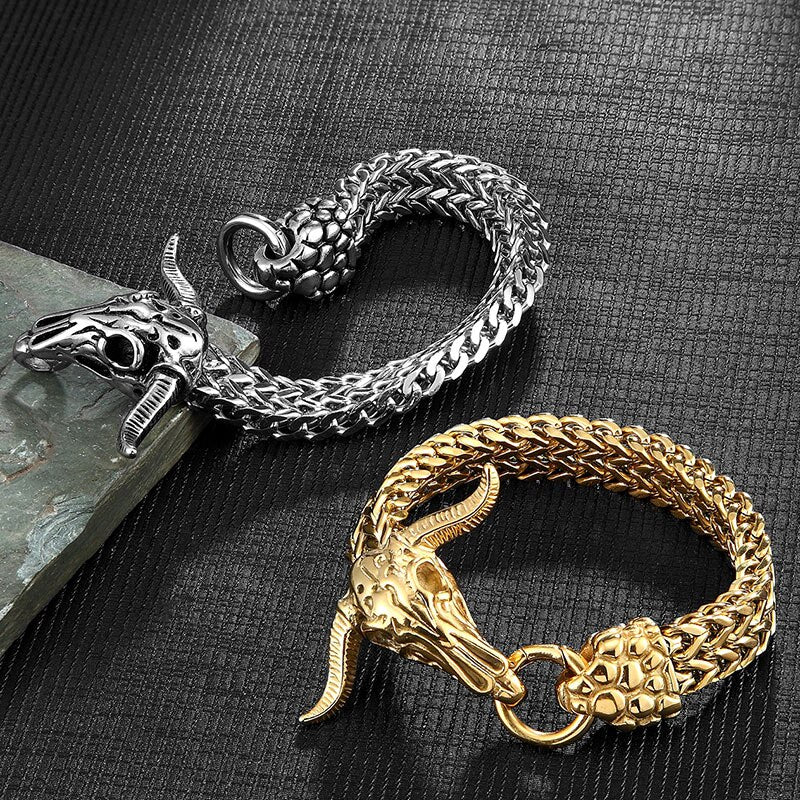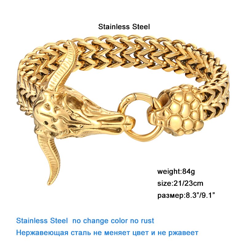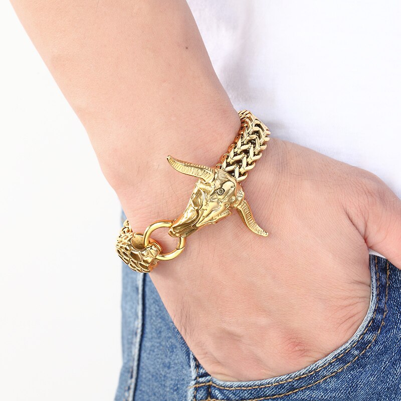 Pulsera de acero inoxidable para hombre, cadena de eslabones con cabeza de vaca, joyería de hip hop, accesorios de rock clásico, brazaletes de moda hechos a mano, regalo