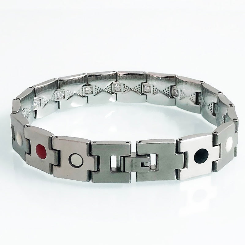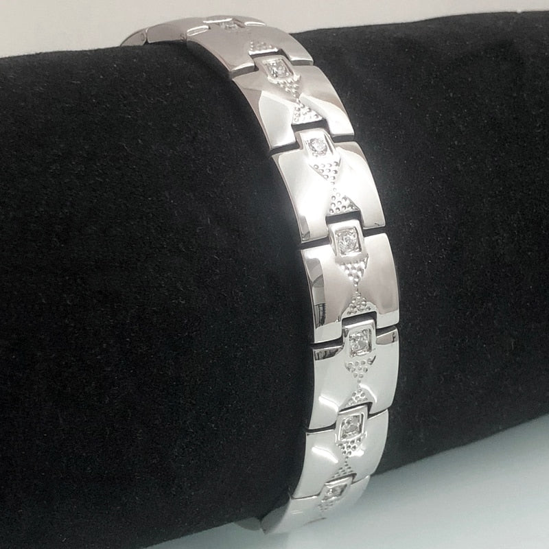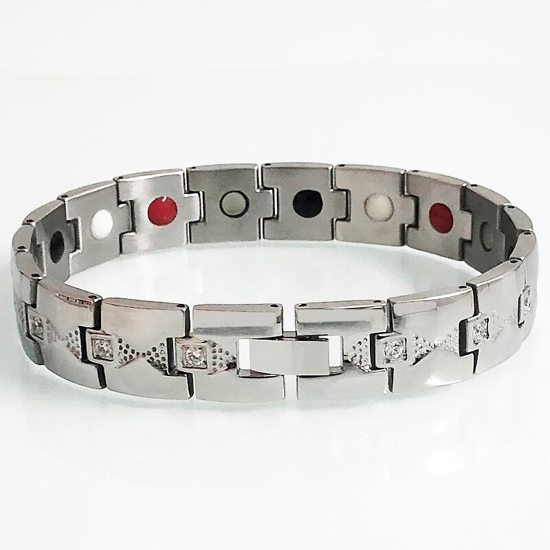 Pulsera de acero inoxidable para hombre, cuidado de la salud para mujer, germanio, iones negativos biológicos, accesorios de muñeca con incrustaciones de cristales, joyería para mujer.