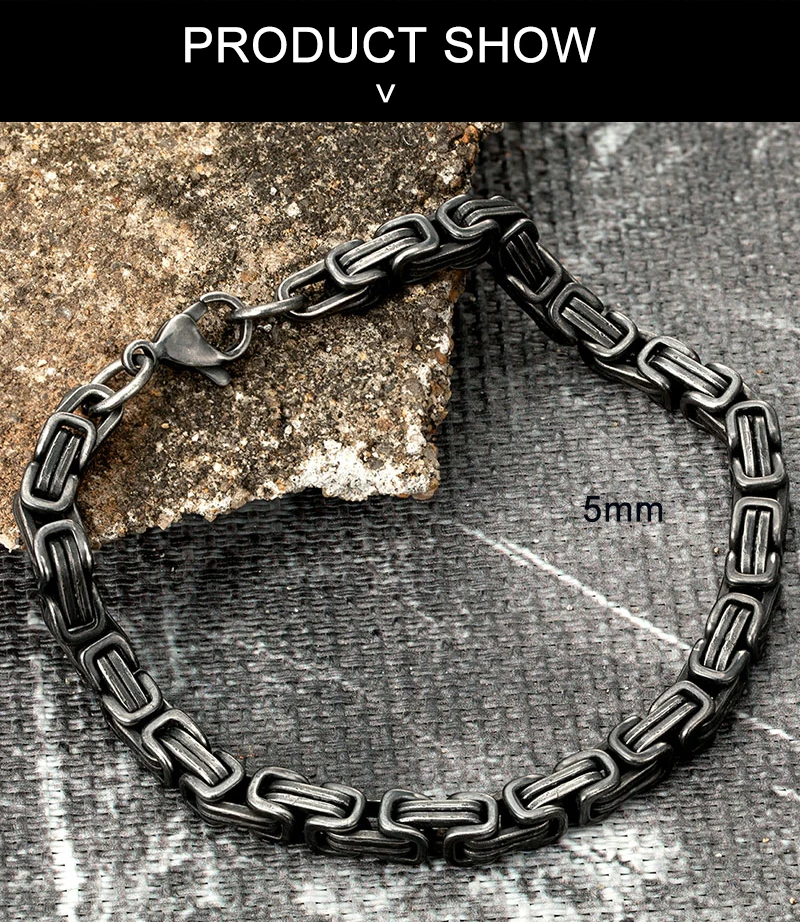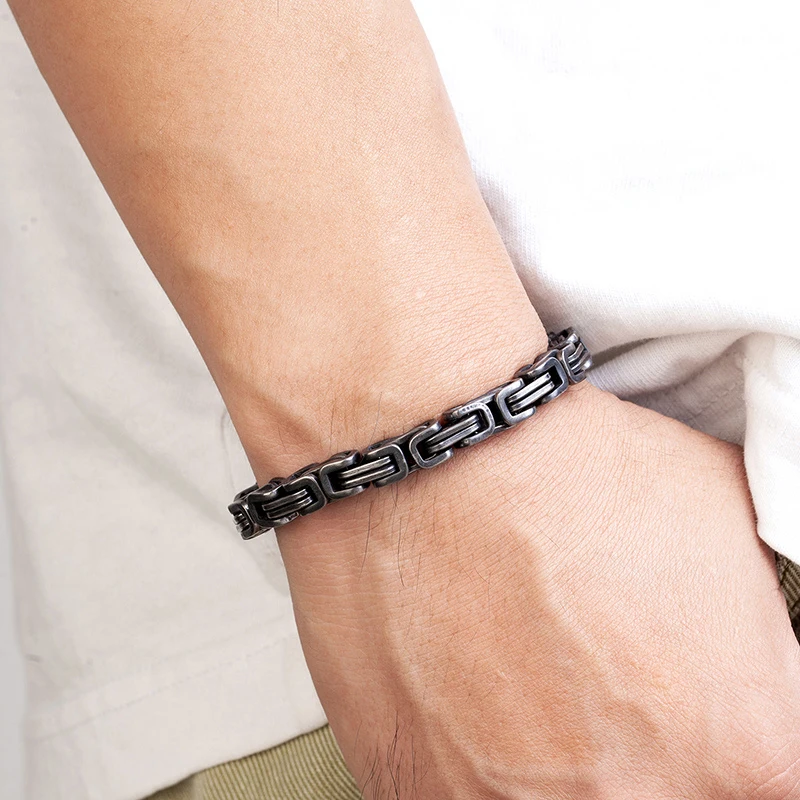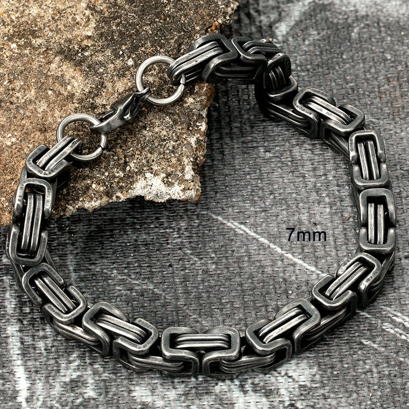 Pulseras de acero inoxidable para hombre, estilo vintage, oxidado, estilo punk, con cadena de eslabones cubanos.