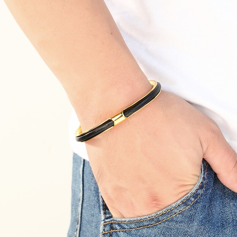 Brazalete cubano de acero inoxidable para hombre, dorado y negro, joyería de cuero de moda, pulseras, regalos para amigos.
