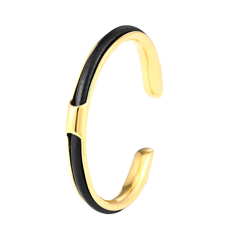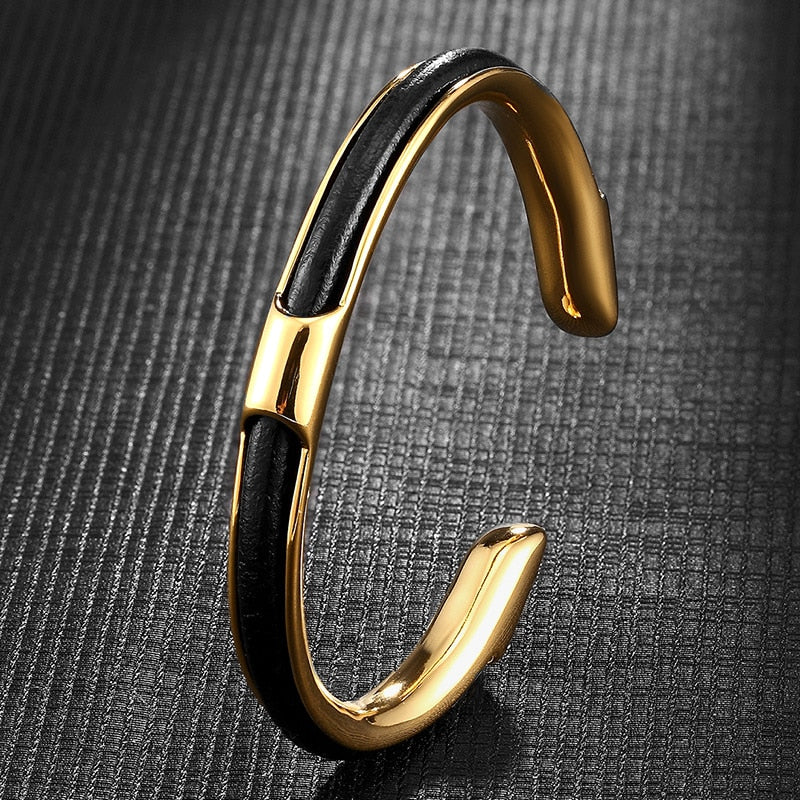 Brazalete cubano de acero inoxidable para hombre, dorado y negro, joyería de cuero de moda, pulseras
