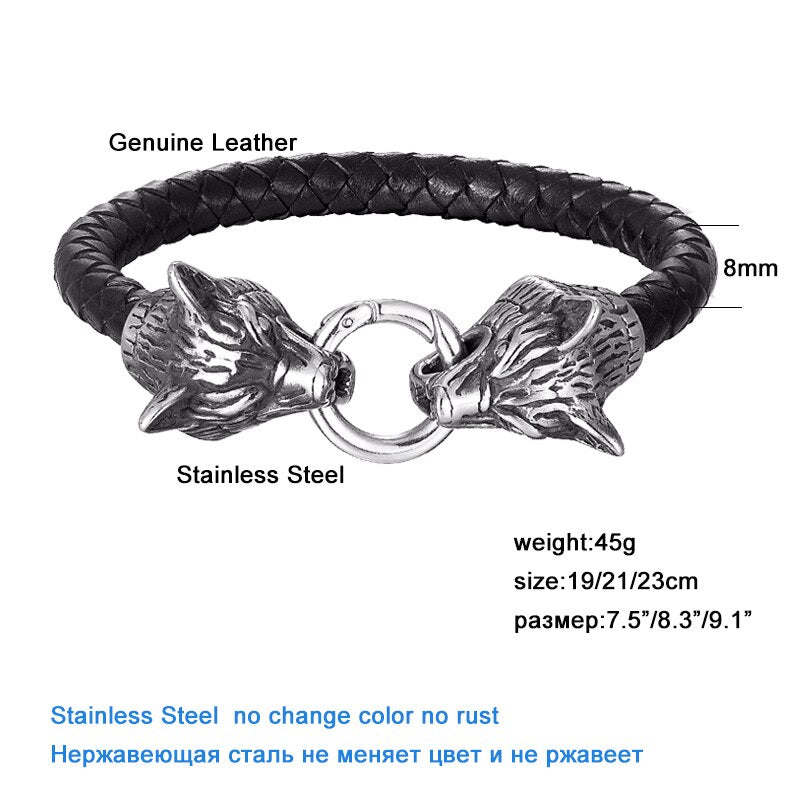 GU KA Joyería al por mayor Pulsera de cuero para hombre con cabeza de lobo Brazaletes hechos a mano de acero inoxidable Punk/Hip Hop/High Street/Joyería de moda Puede combinar con toda la ropa que te guste Mantiene el color durante mucho tiempo La mejor opción de regalo para hombres Material: acero inoxidable 316L Peso: alrededor de 45G Longitud: 19/21/23CM Nota: Todos los pedidos se enviarán a través del método de envío registrado y rastreable, seguro y rápido