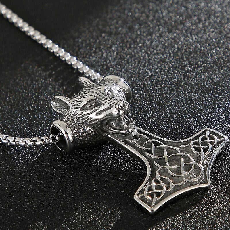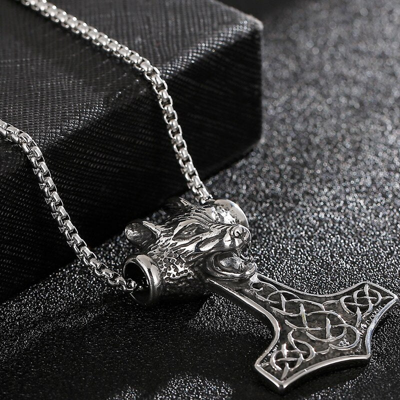 Colgante de cabeza de lobo vikingo para hombre, estilo retro de acero inoxidable, estilo punk rock, estilo hipster, joyería de fiesta.