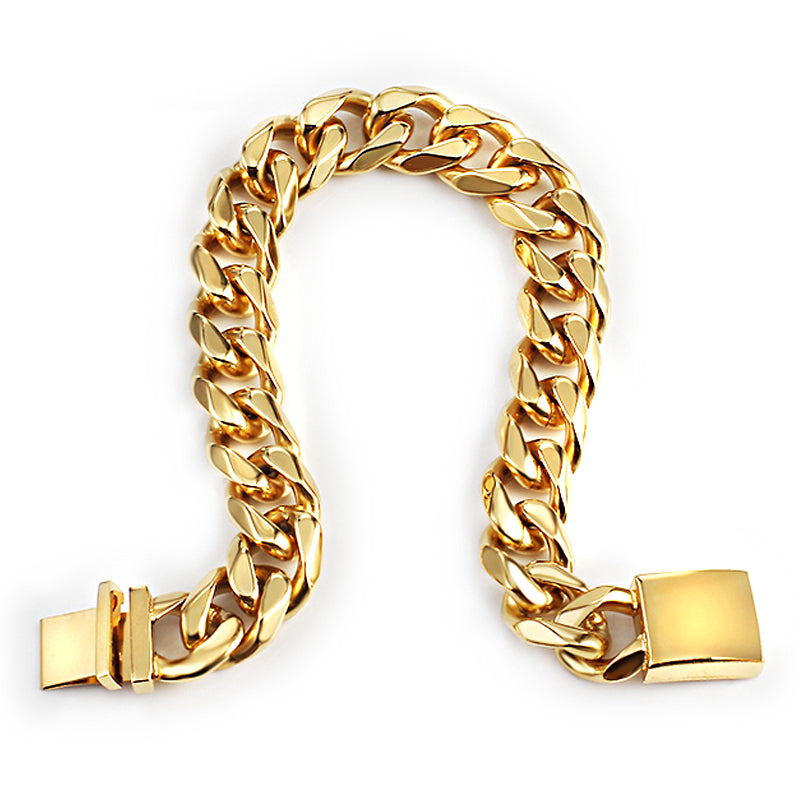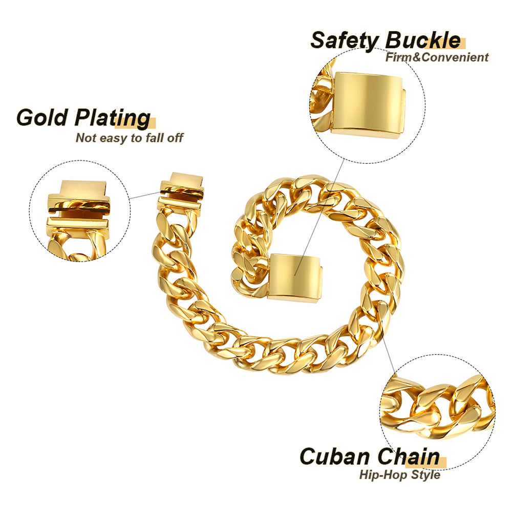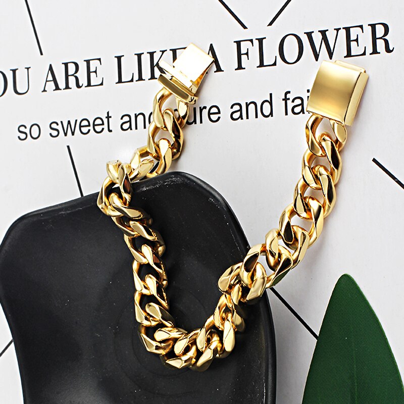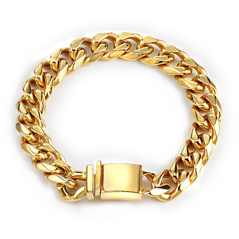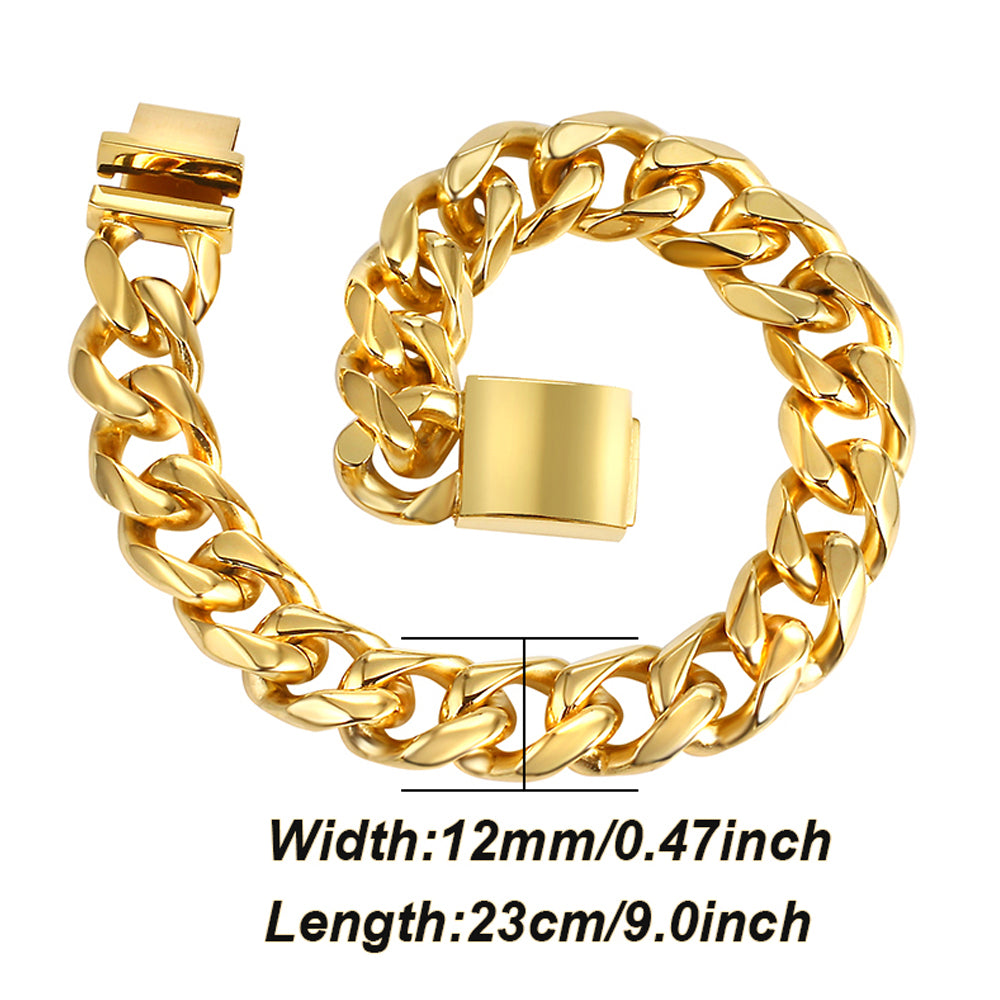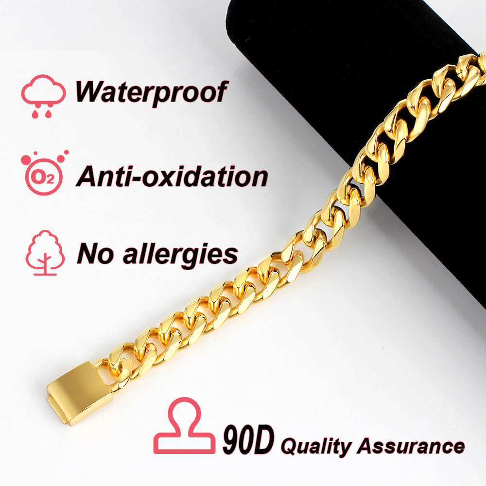 Pulsera de eslabones cubanos de acero inoxidable 316L dorada para hombre y mujer.