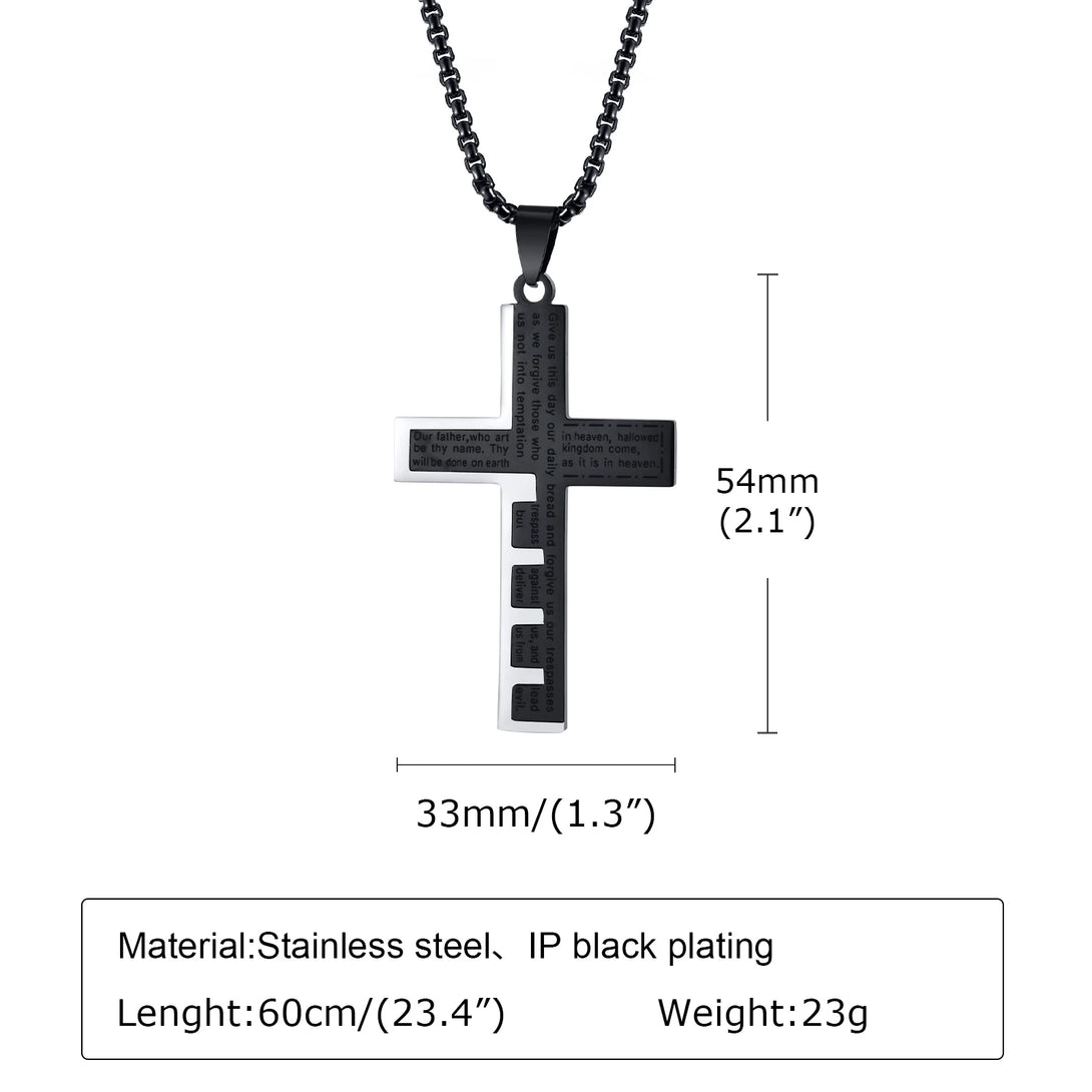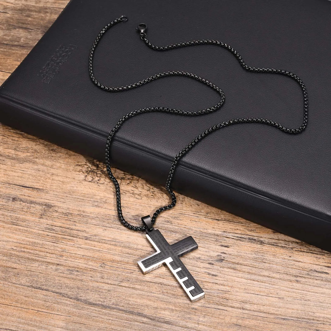 Collar con cruz bíblica para hombre, elegante colgante de acero inoxidable en color negro y plateado, joyería religiosa.