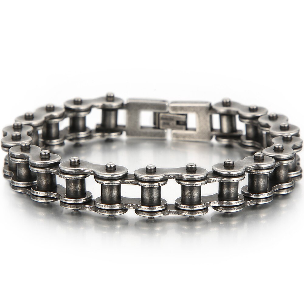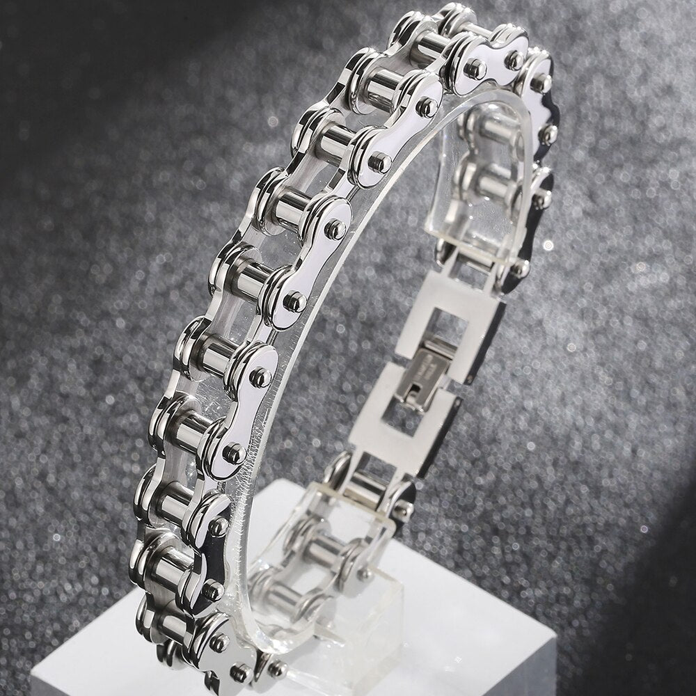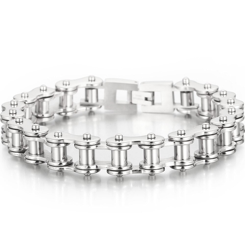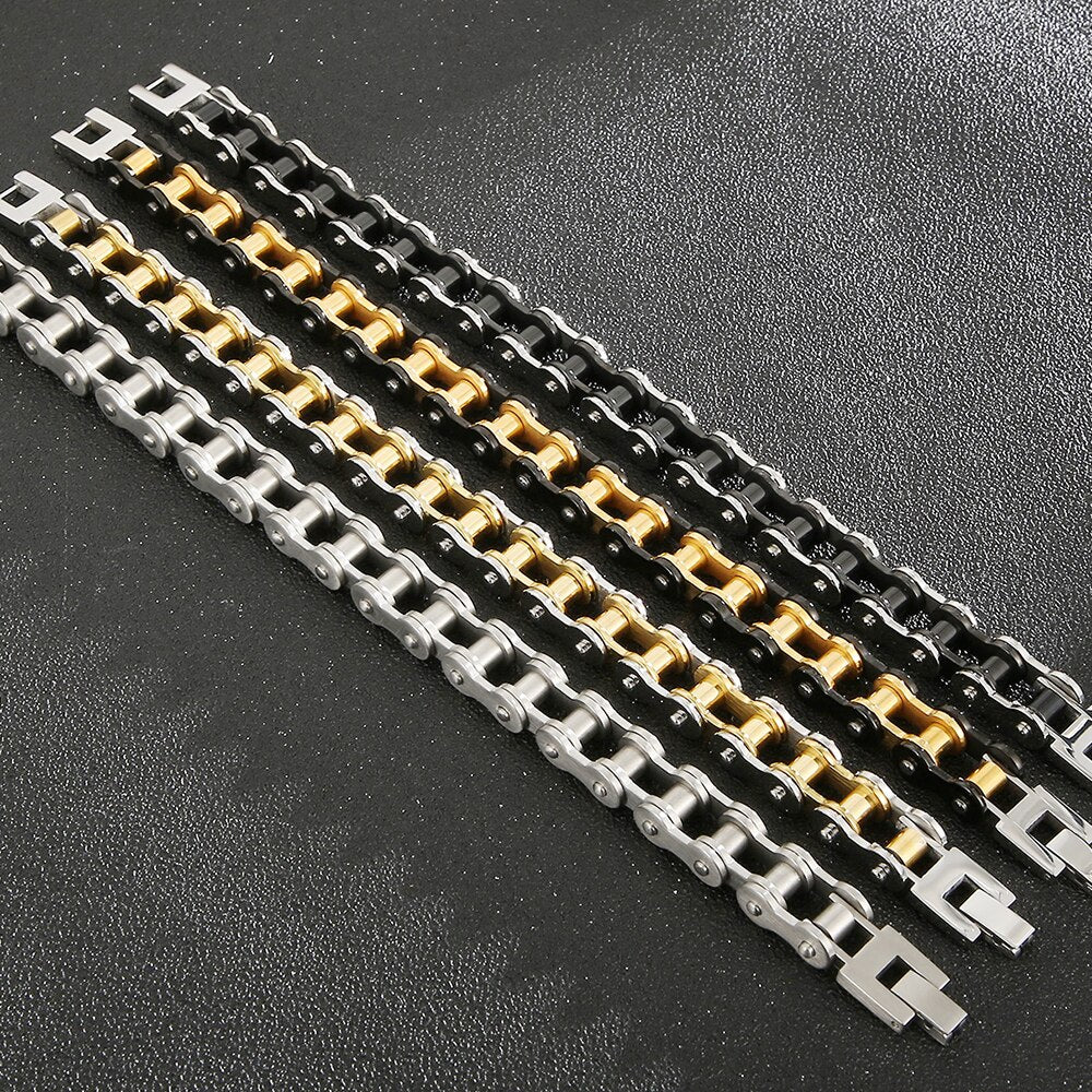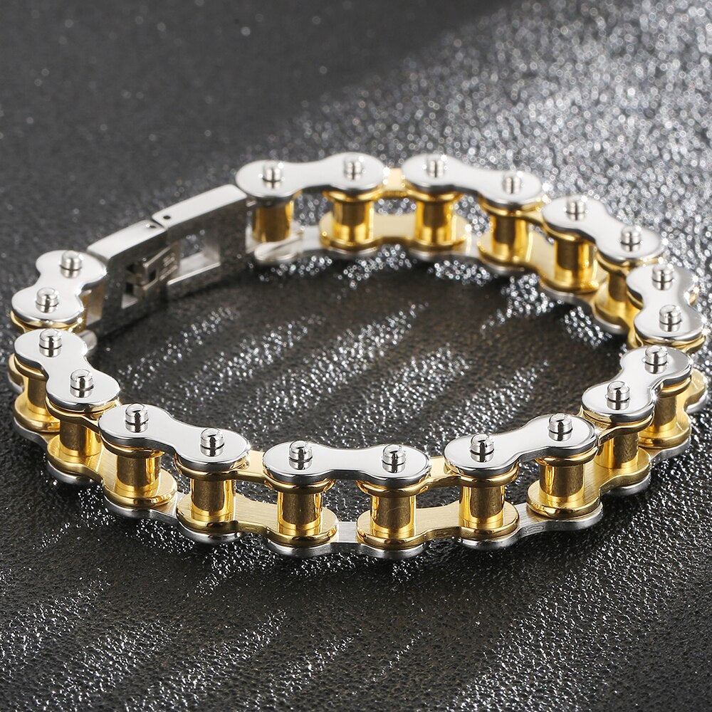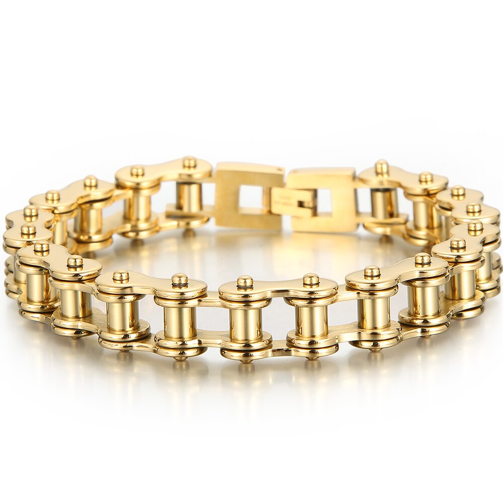 Pulsera de motociclista para hombre, de acero inoxidable chapado en oro pulido, con cadena de motociclista.