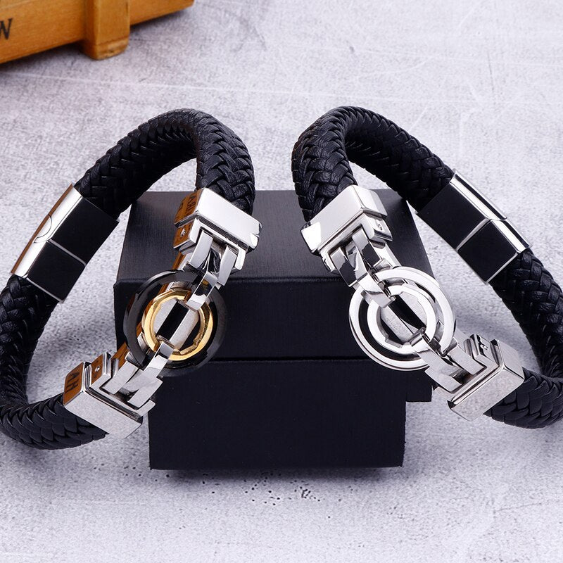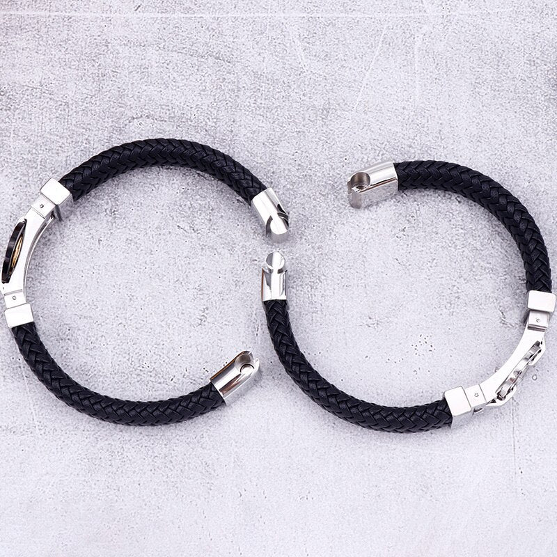 Pulsera de cuero negro para hombre con cierre magnético, pulsera de cuero trenzado de vaca y acero inoxidable, joyería grabable para hombre.