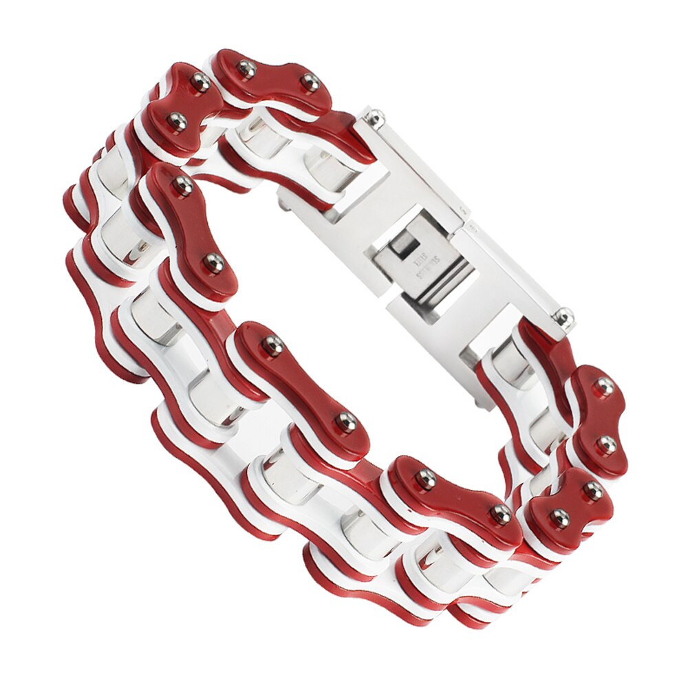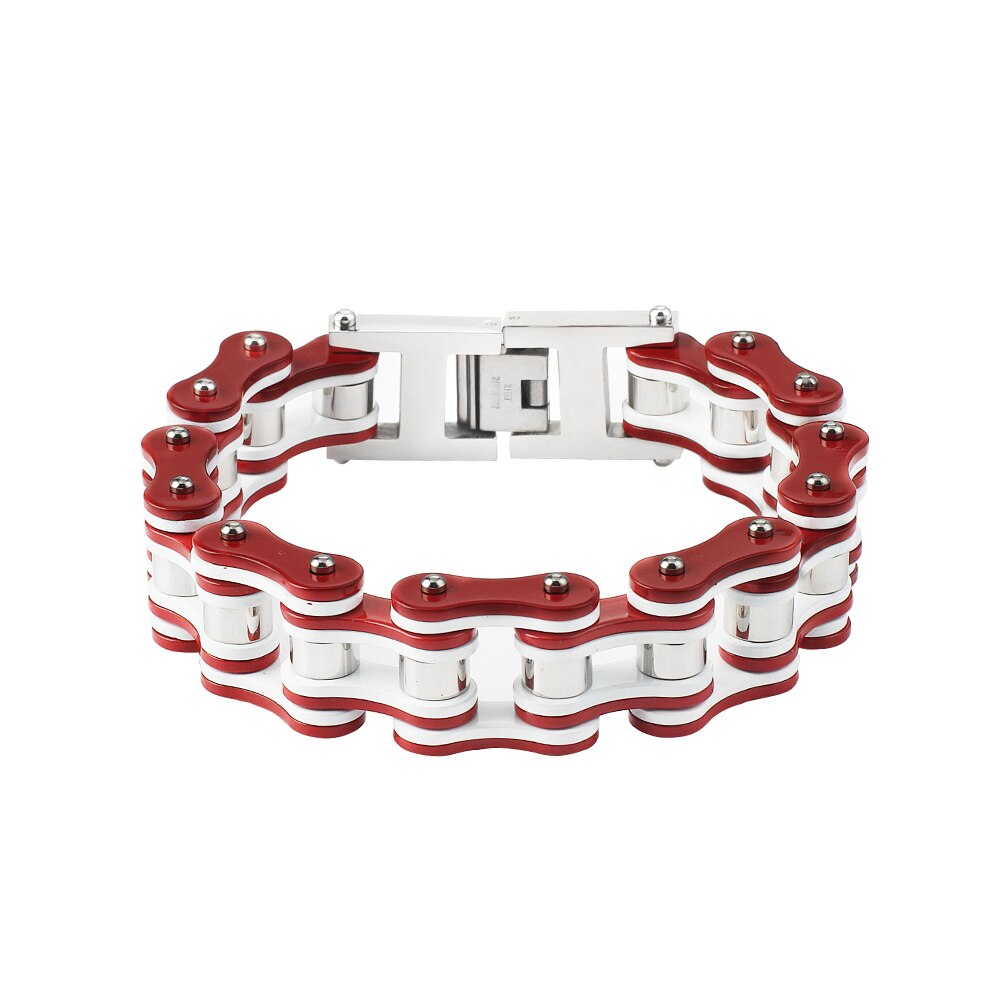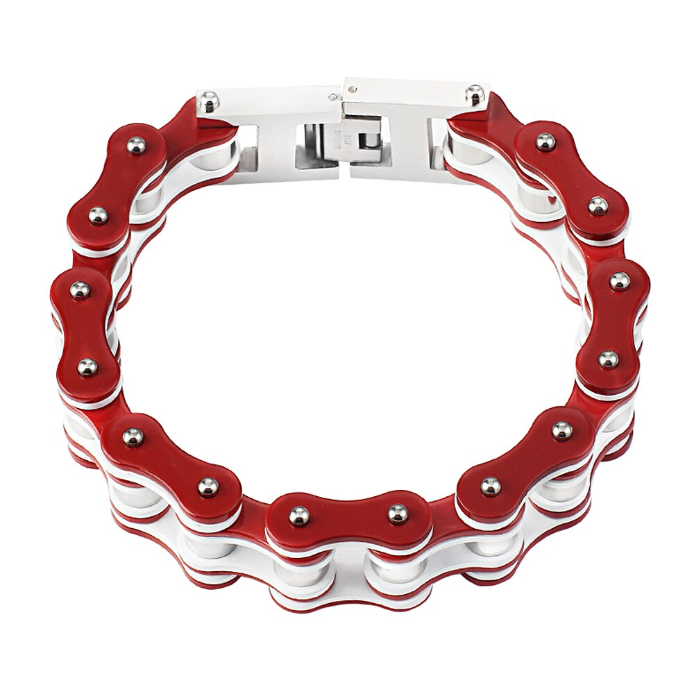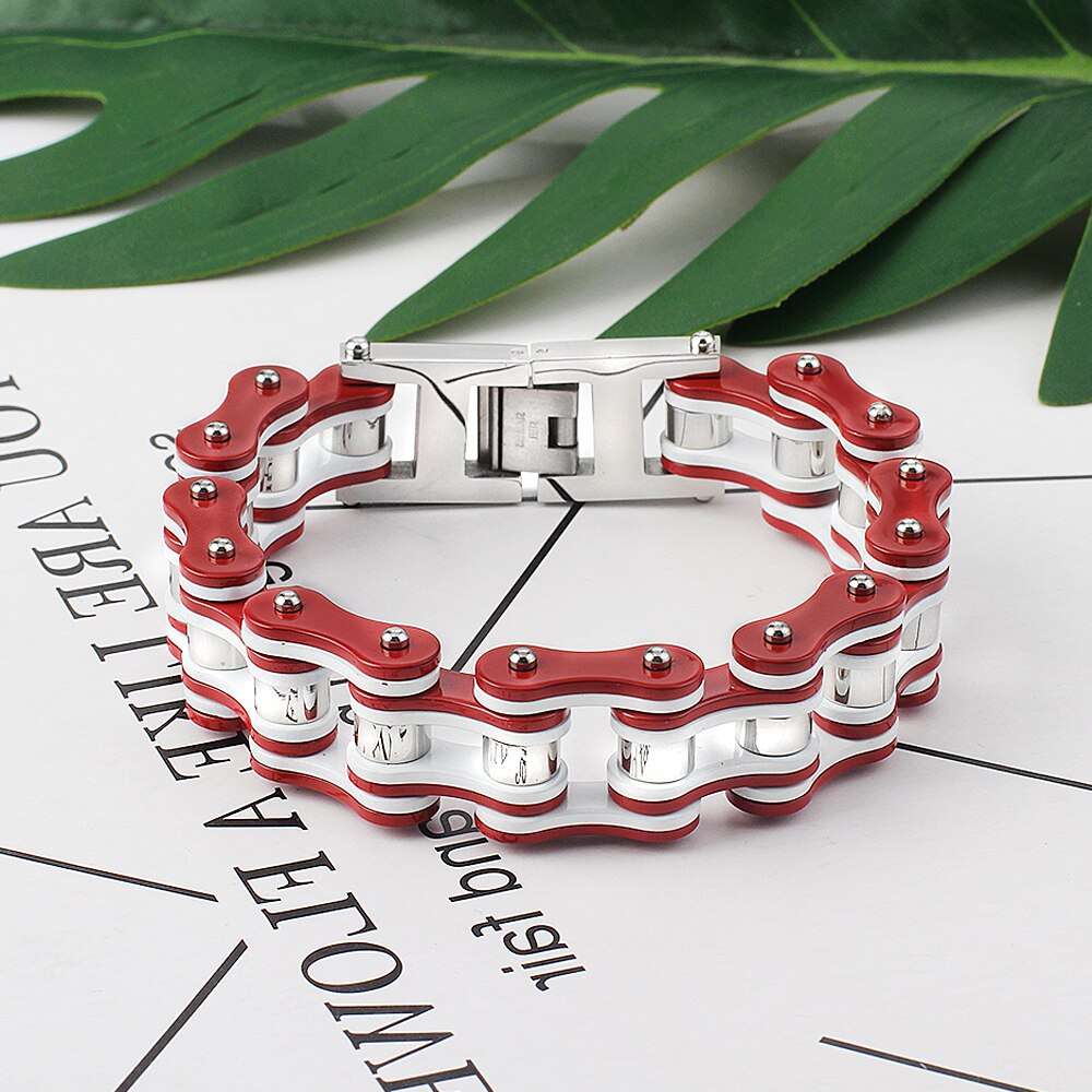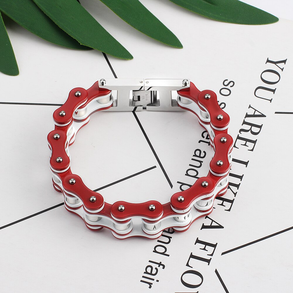 Pulsera de hombre, joyería de moda para mujer, cadena de bicicleta con motor rojo y blanco, acero inoxidable 316L, cadena de locomotora para bicicleta, pulseras de motociclista