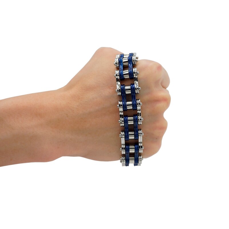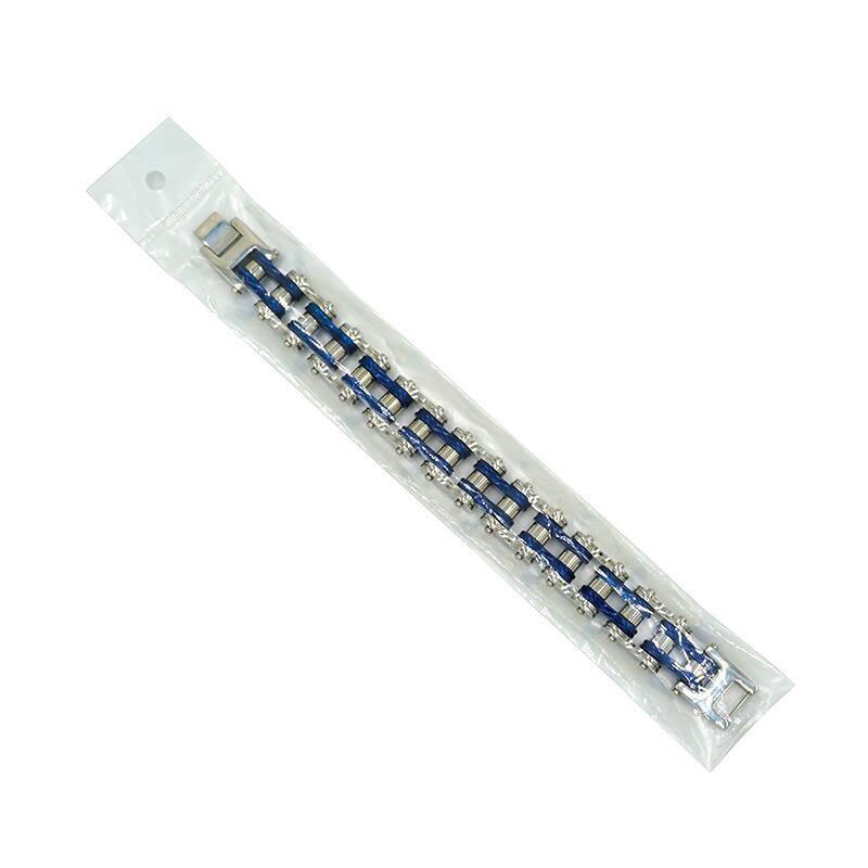 Pulseras para hombre, brazaletes azules con diseño de motociclista y cadena de eslabones para bicicleta.