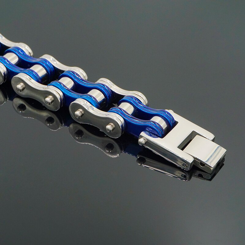 Pulseras para hombre, brazaletes azules con diseño de motociclista y cadena de eslabones para bicicleta, de acero inoxidable 316L, joyería de moda, regalo.