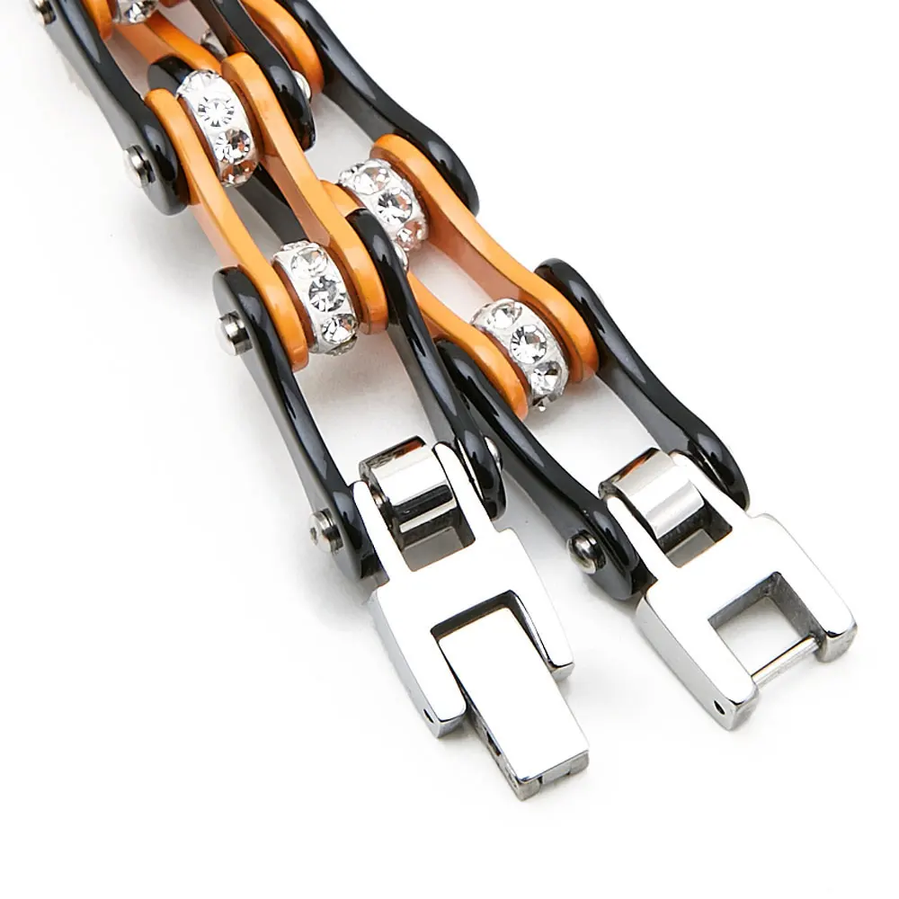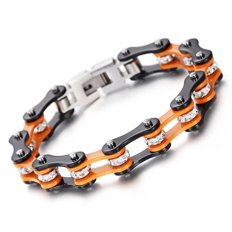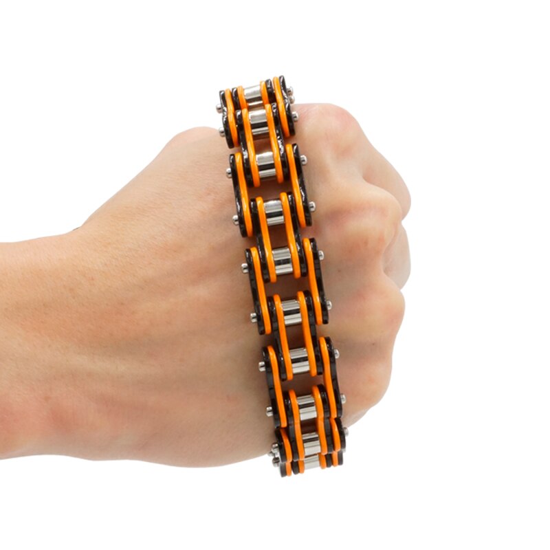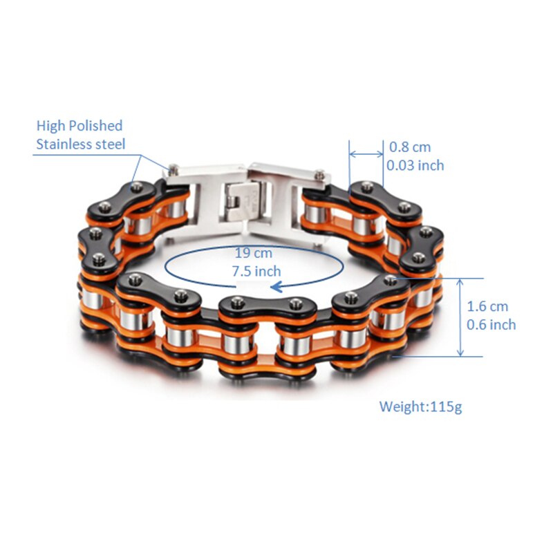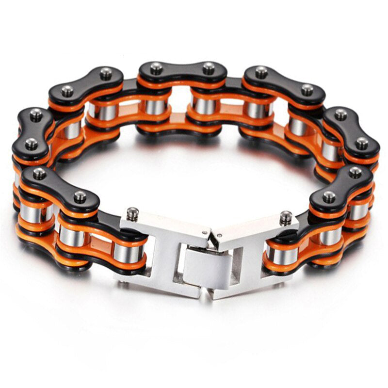 Pulseras para hombre, brazaletes de cadena de motociclista naranja, pulseras de eslabones para hombre, joyería punk de acero inoxidable.
