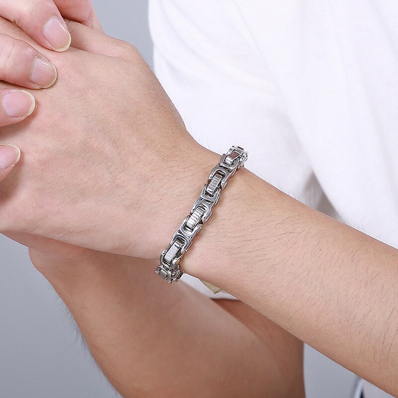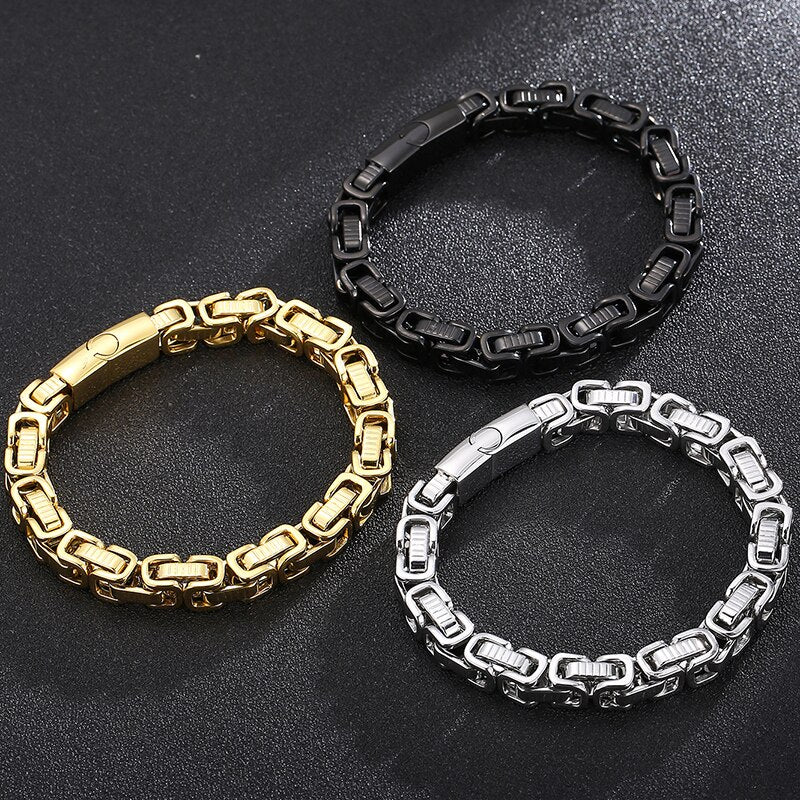 Pulseras para hombre de acero inoxidable 316L sólido y resistente con cadena de eslabones de 8 mm de ancho.