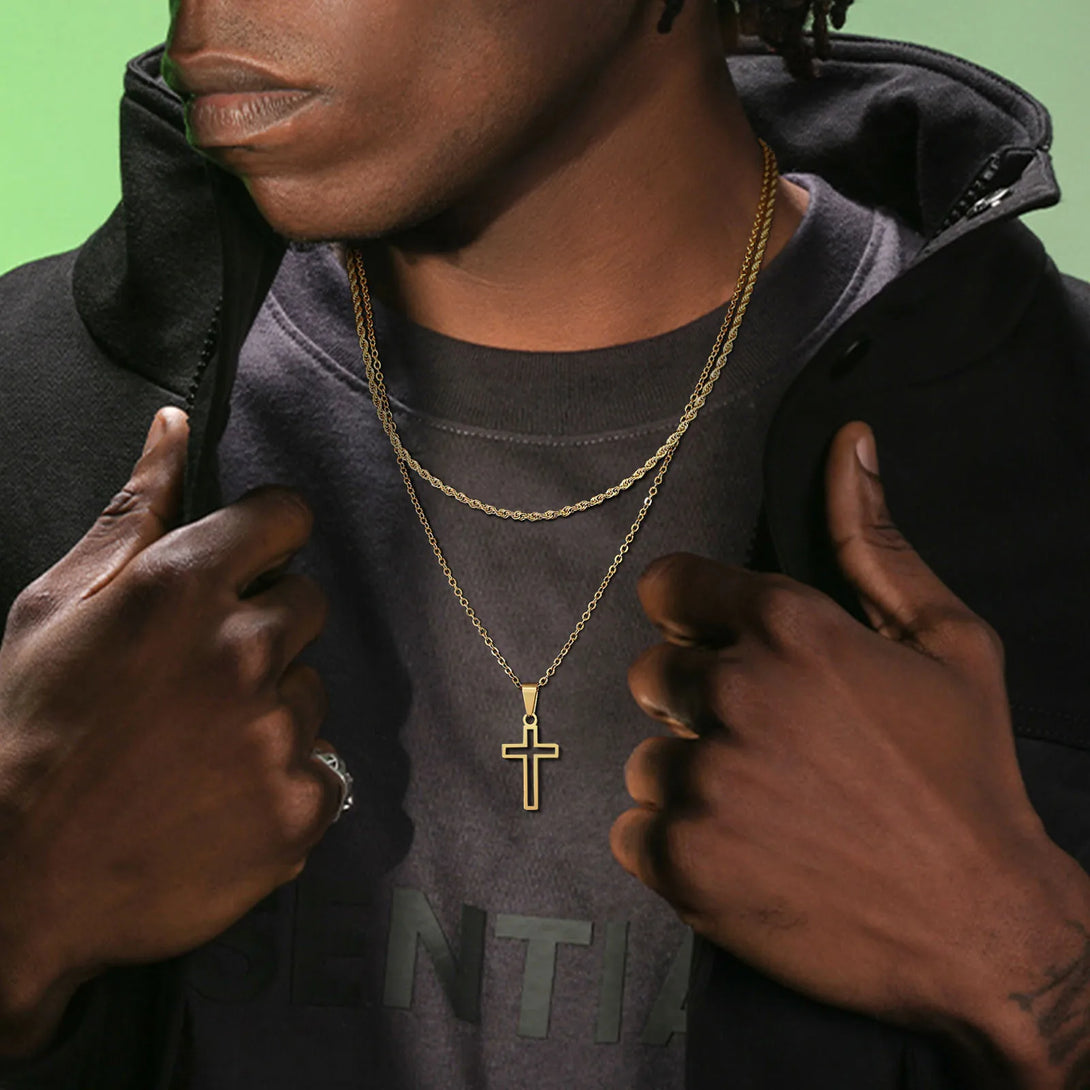 Collar con cruz recortada para hombre, colgante de cruz hueca de acero inoxidable resistente al agua, joyería de regalo con fe religiosa de Cristo.