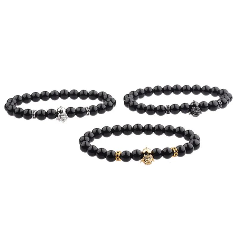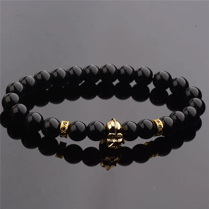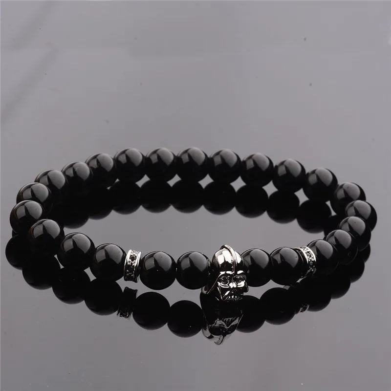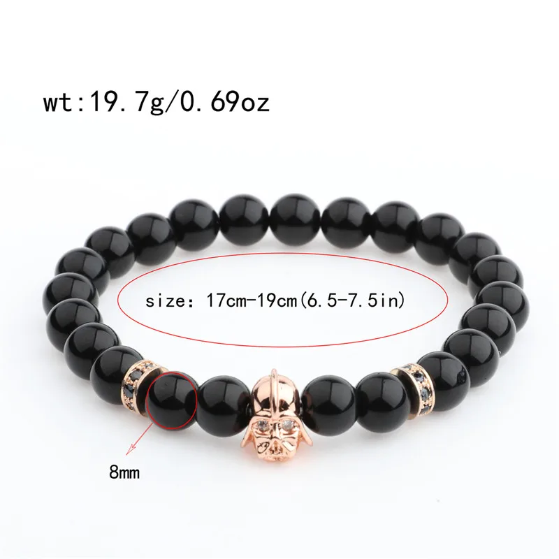 Pulseras de cuentas de circonita cúbica para hombre, 8 mm, con piedra de lava negra brillante, 2022